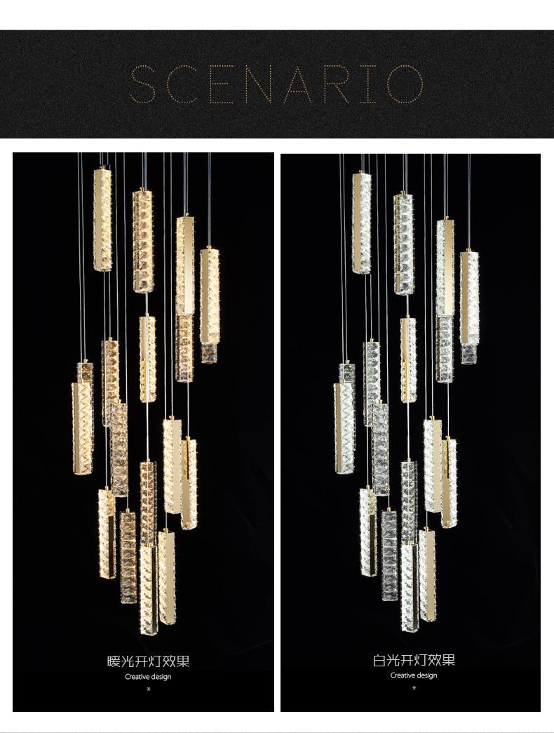 계단 라이트 롱 샹들리에 라이트 럭셔리 크리스탈 샹들리에 계단 더블 빌딩 할로우 로프트 빌라 거실 램프
