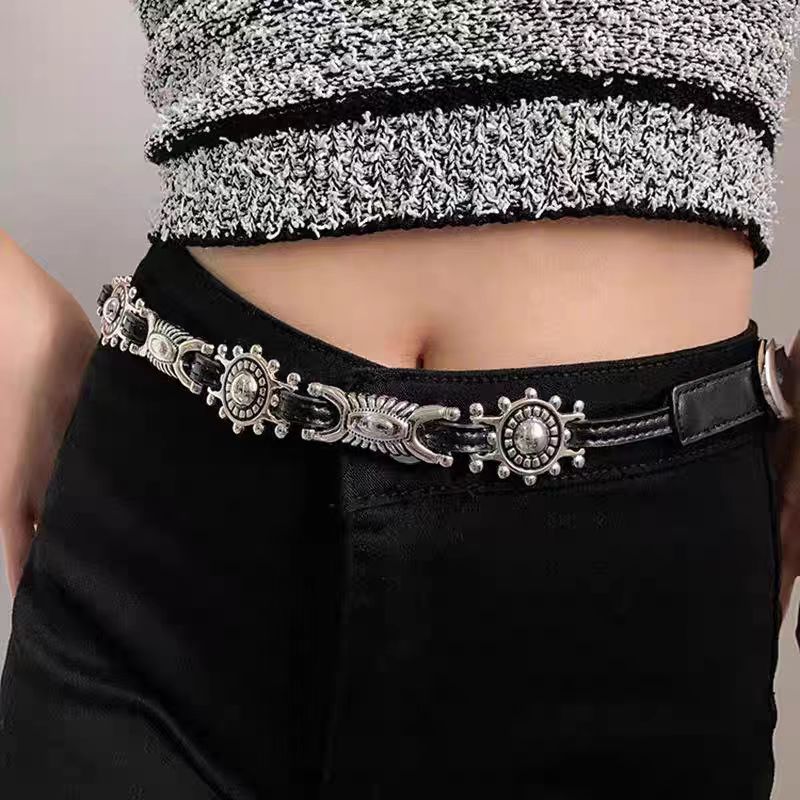 디자인 센스 틈새 스타 와이드 벨트 여성 장식 액세서리 치마 타이트 허리 틈새 벨트 블랙 빈티지 허리 체인