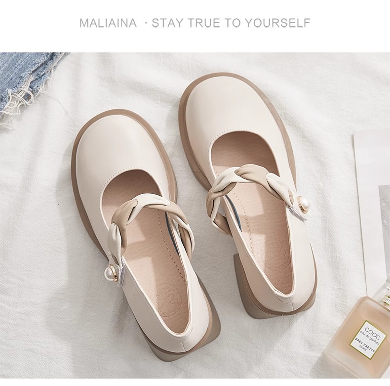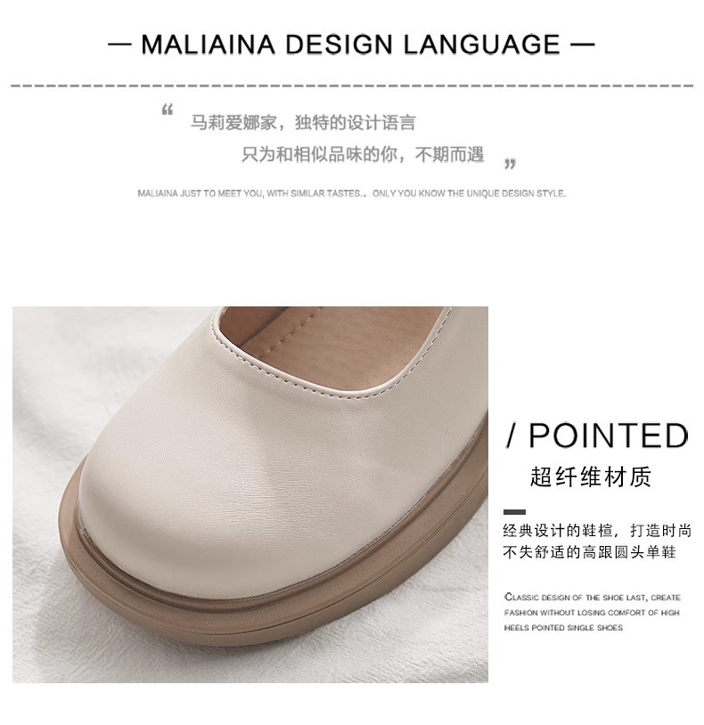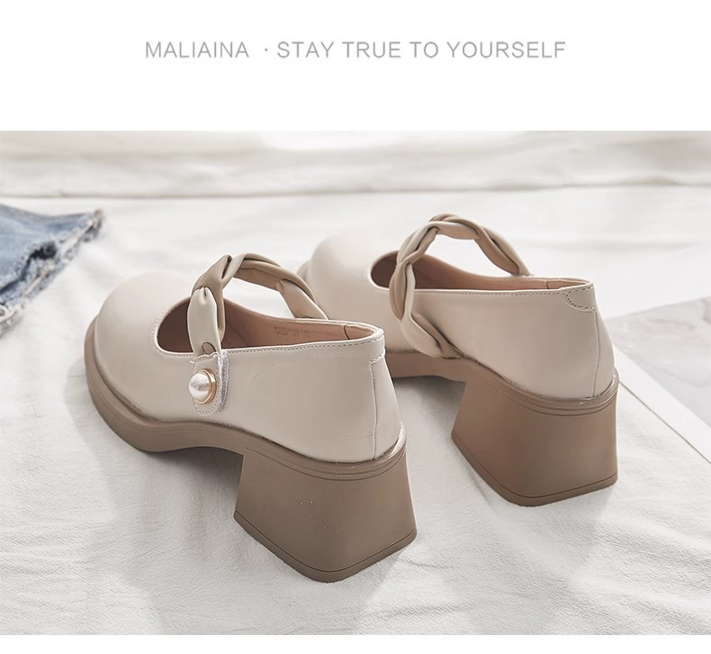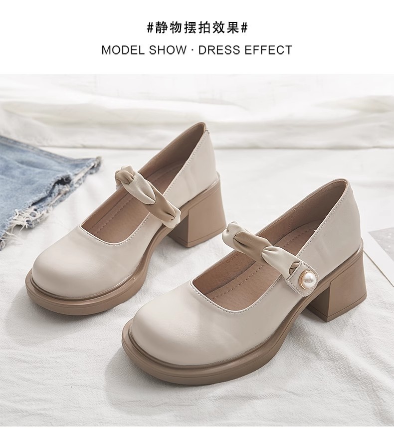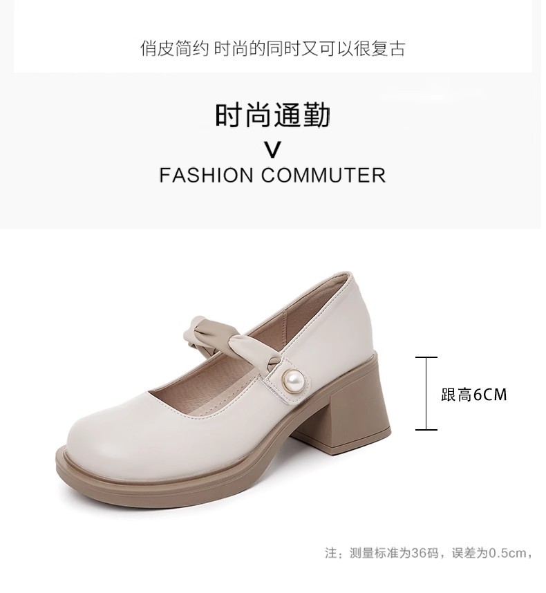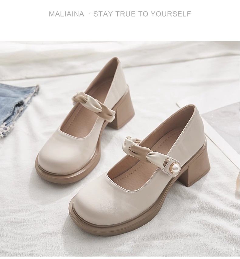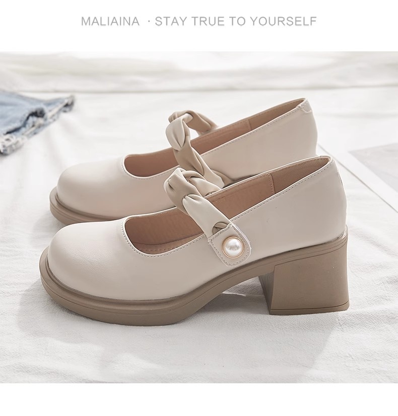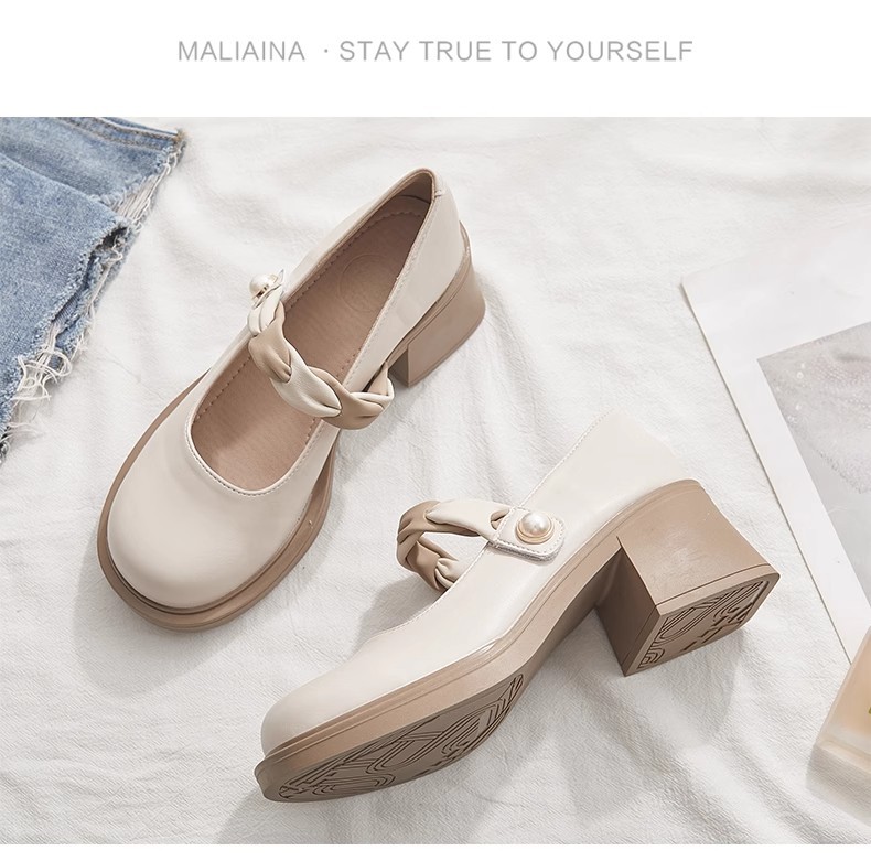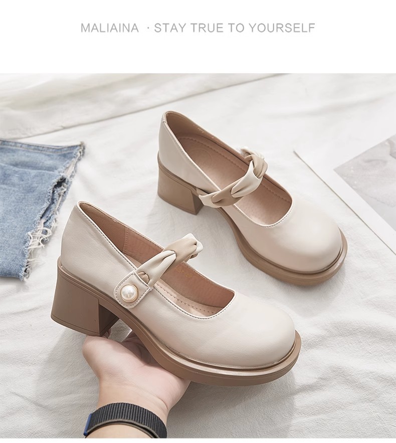 메리 제인 여성 신발 2025 새로운 봄, 여름 두꺼운 굽 하이힐 스커트 작은 가죽 신발 요정 부드러운 스타일 신발스토어 가기