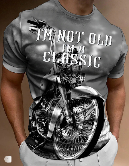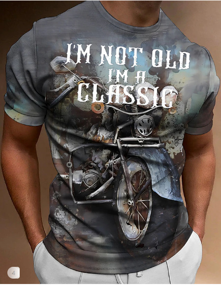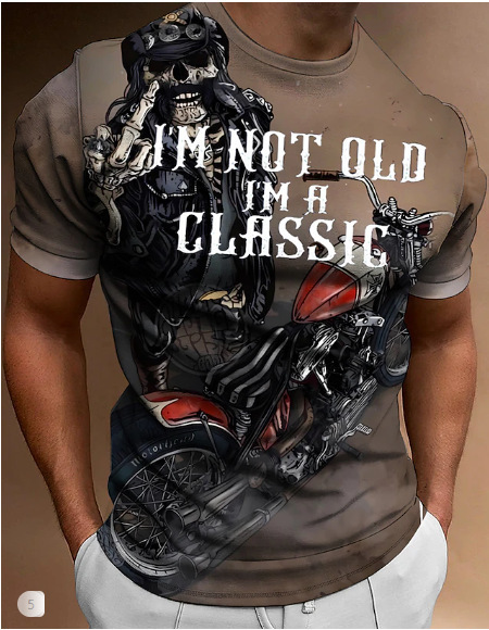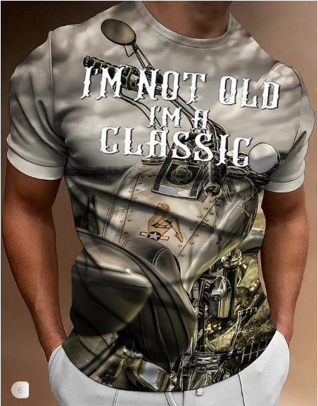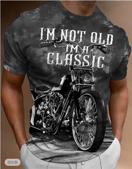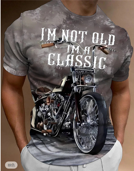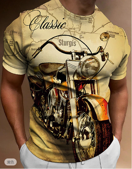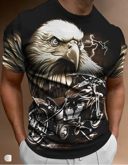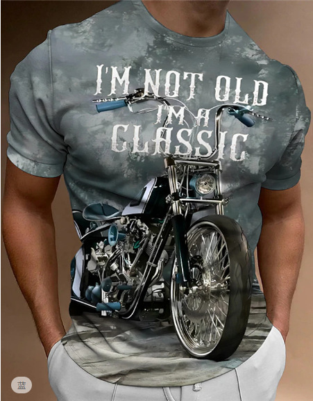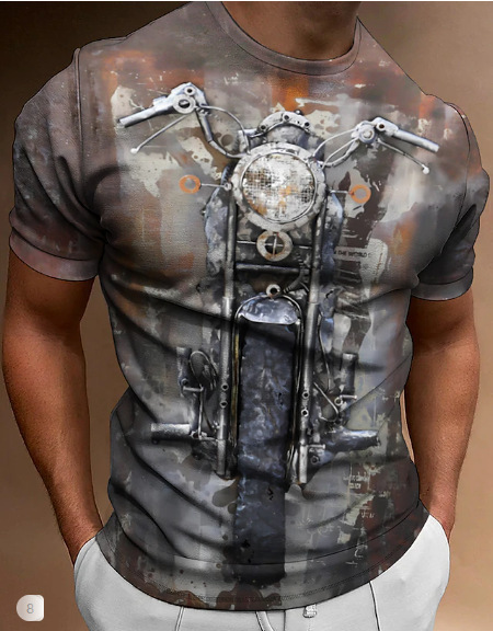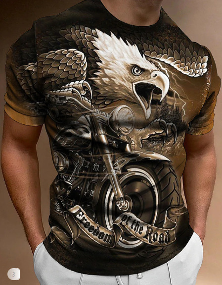24 국경 여름 새로운 대외 무역 남성 아마존 티셔츠 3D 복고풍 오토바이 인쇄 둥근 목 반팔 티셔츠