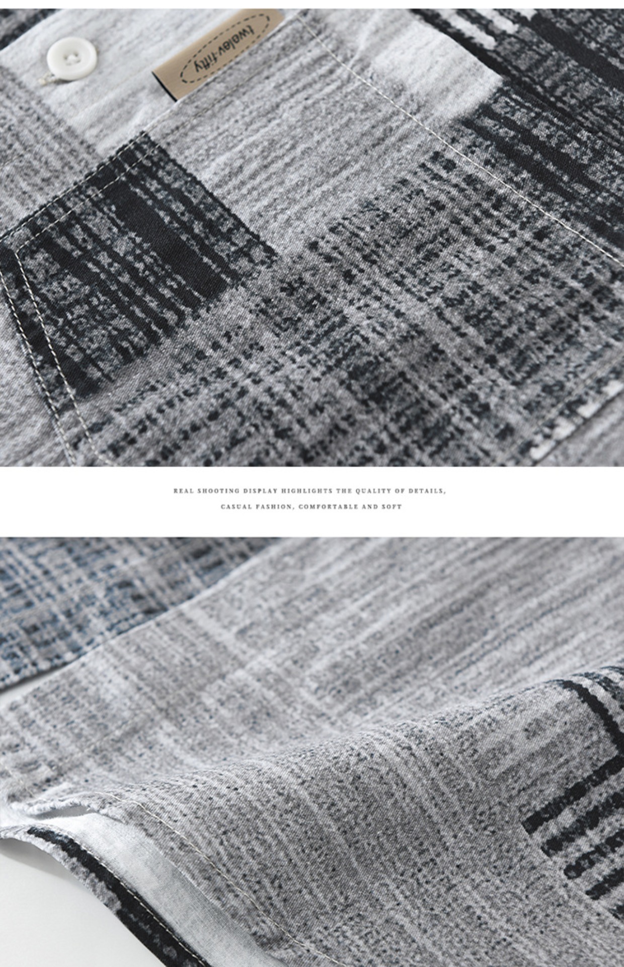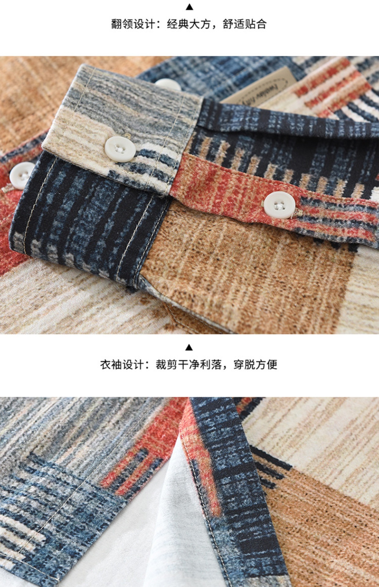 2025 봄, 가을 패션 격자 무늬 프린트 대비 색상 셔츠 고급 셔츠 남성 트렌디 다용도 긴팔 탑