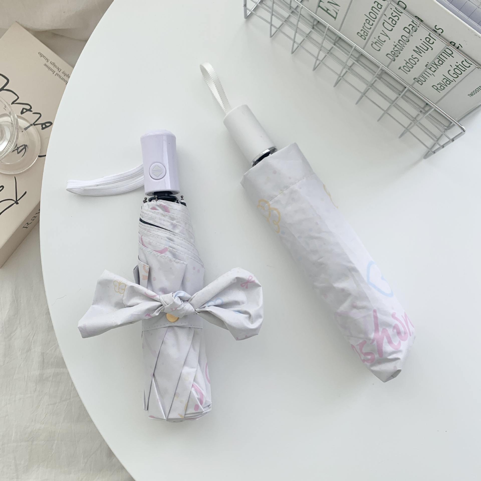 신선한 완전 자동 접이식 우산 여성용 맑고 비오는 우산 블랙 고무 선 스크린 UV 태양 우산