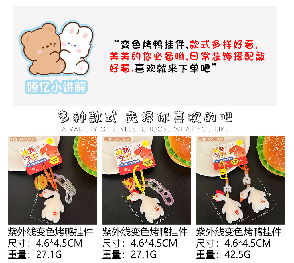 자외선 색상 변경 로스트 오리 로스트 치킨 자동차 펜던트 창조적 인 키 체인 가방 펜던트 커플 여자 친구 선물 도매스토어 가기