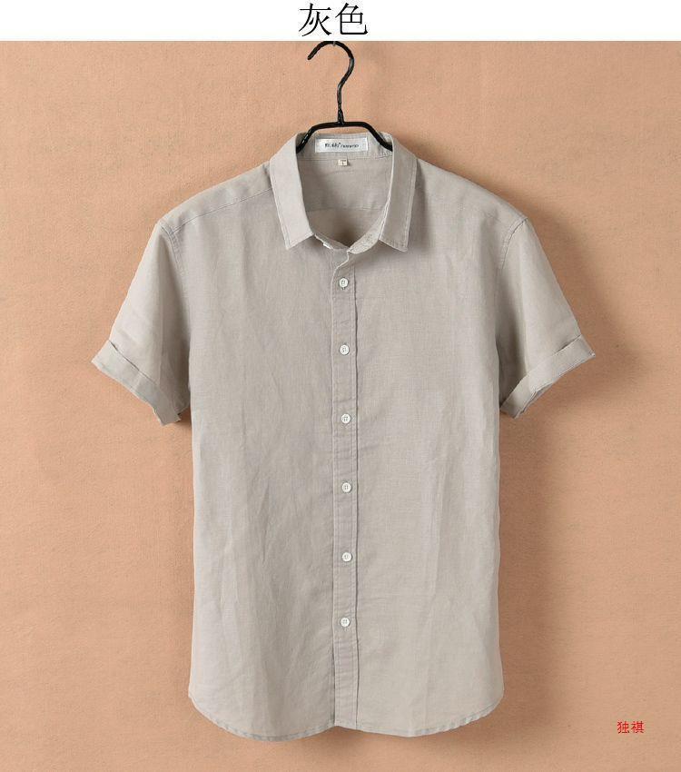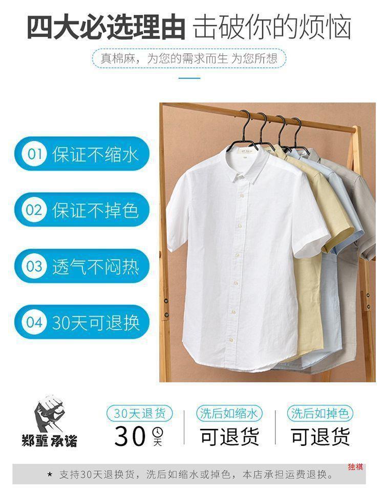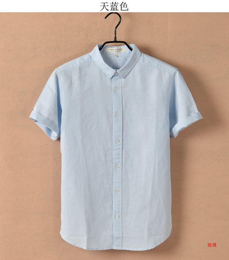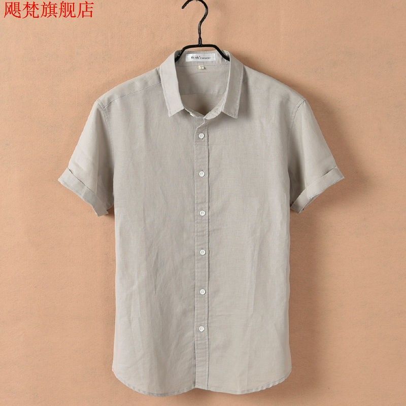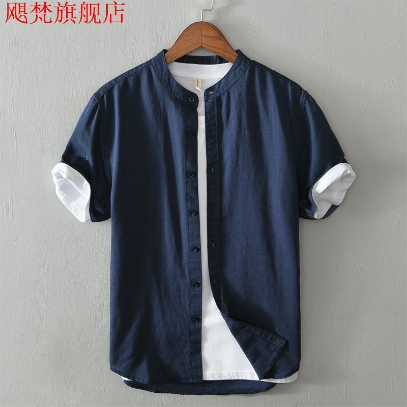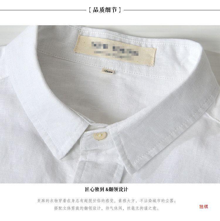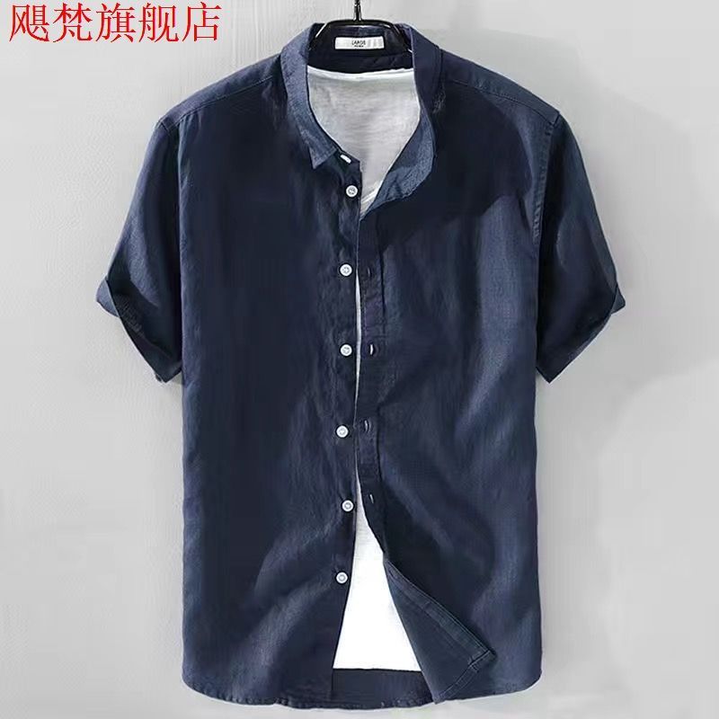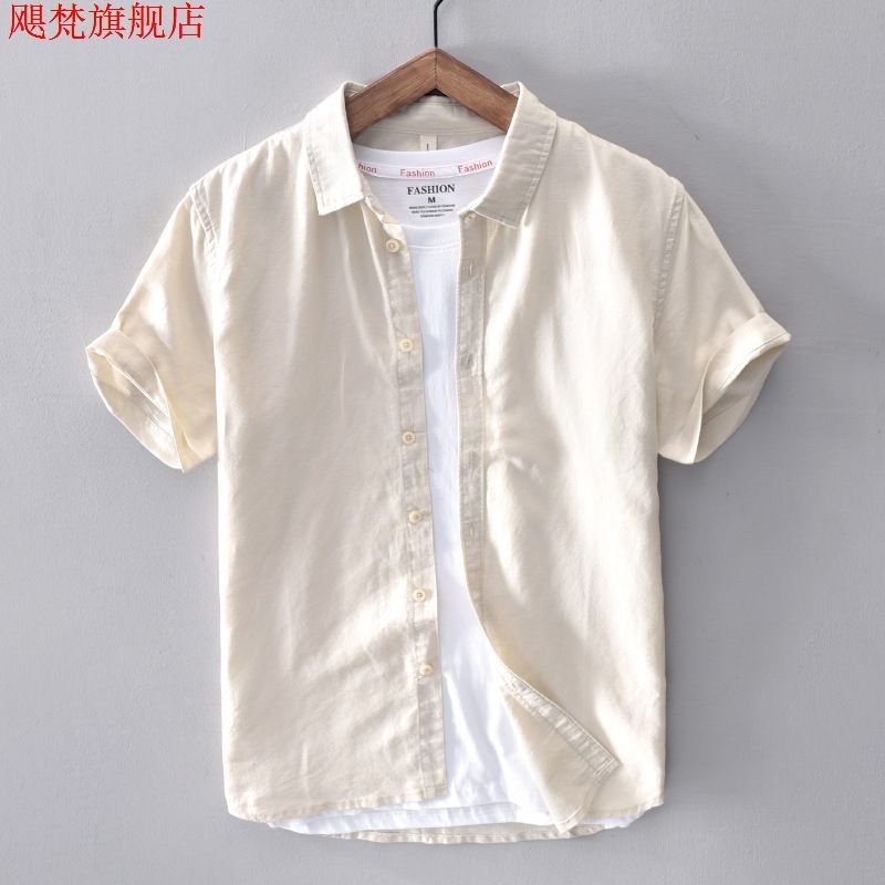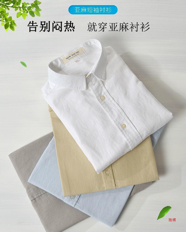 통기성 린넨 셔츠 남성용 반팔 슬림 탑 여름 얇은 옷깃 청소년 코튼 린넨 캐주얼 화이트 셔츠스토어 가기