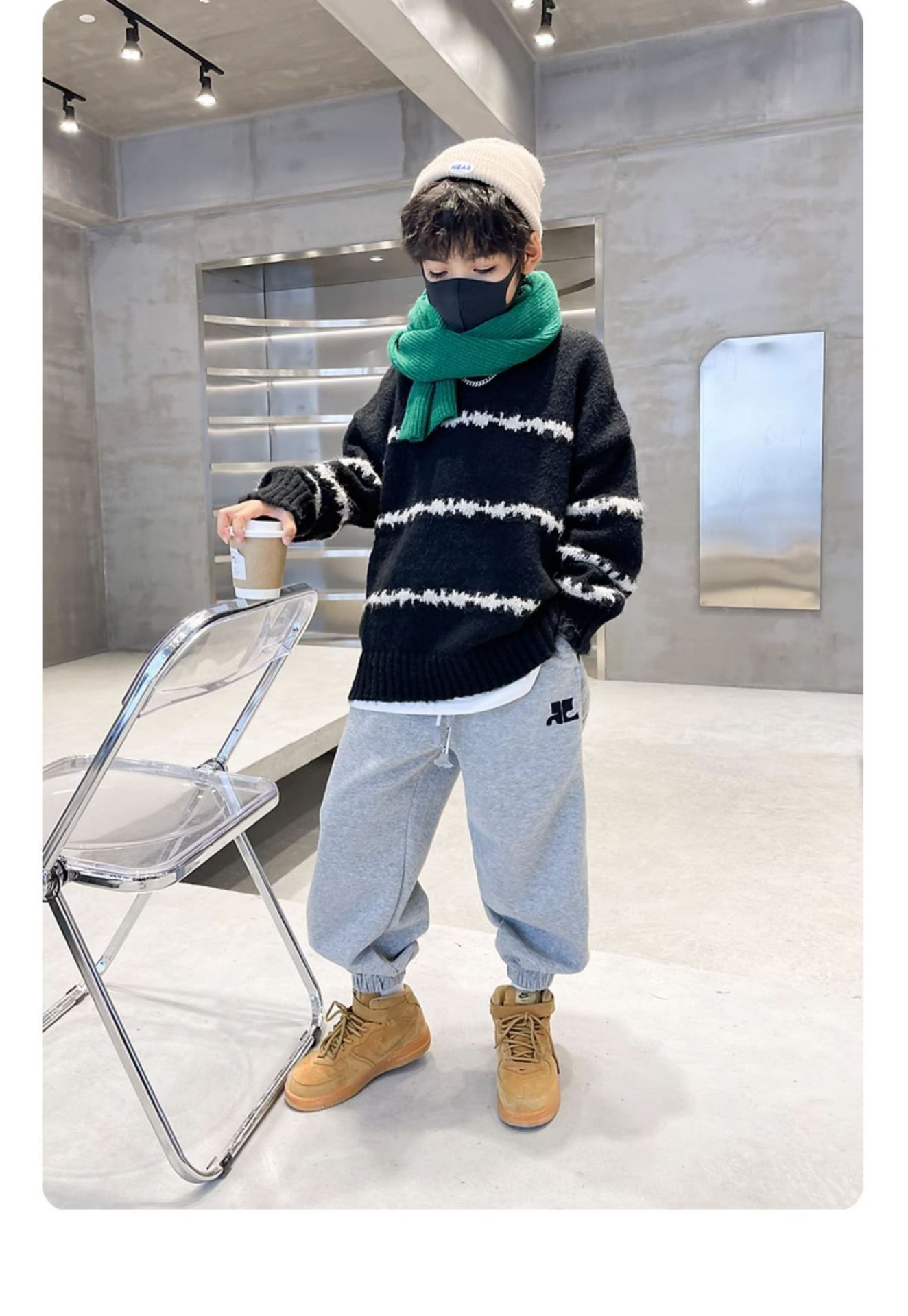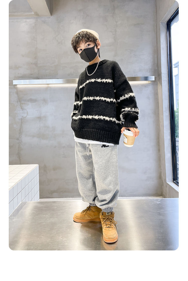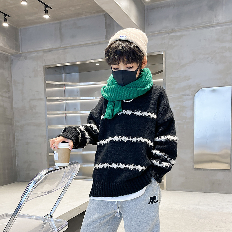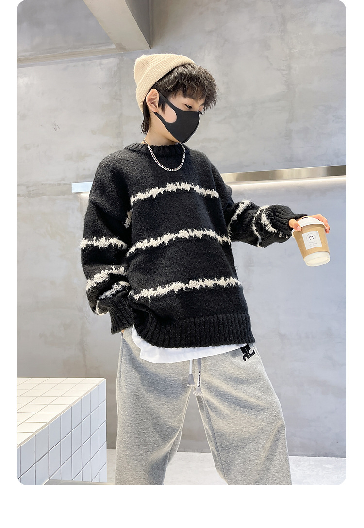 남학생 스웨터 2024 가을과 겨울 새 한국식 두꺼운 니트 스웨터 중 · 빅 보이즈 올매치 따뜻한 풀오버 스웨터