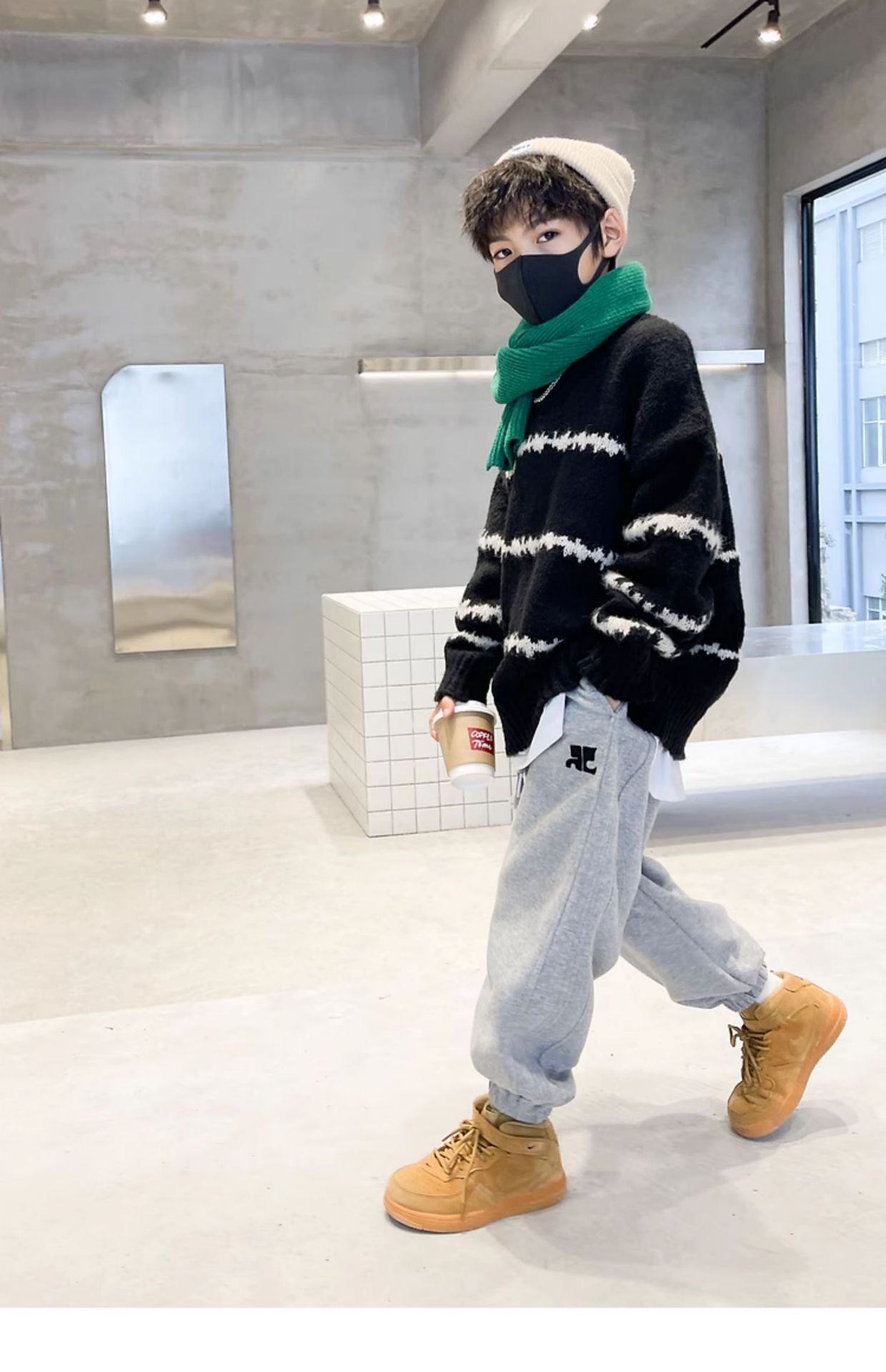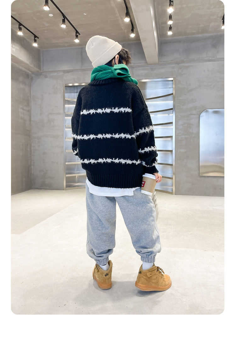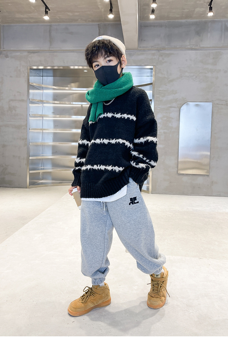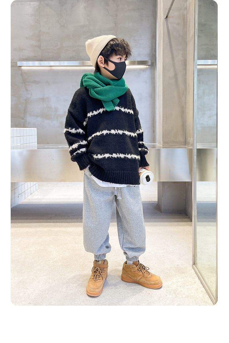 남학생 스웨터 2024 가을과 겨울 새 한국식 두꺼운 니트 스웨터 중 · 빅 보이즈 올매치 따뜻한 풀오버 스웨터