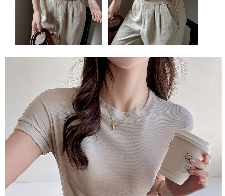 솔리드 컬러 어깨 반팔 티셔츠 여성 여름 새로운 한국식 Lyocell Tencel 스파이스 걸스 슬림 핏 슬림 라운드 넥 탑스토어 가기