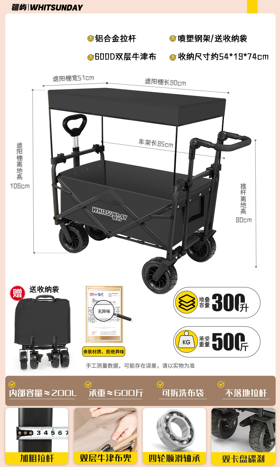 • 블랙 [두꺼운 프레임 푸시풀 일체형] 견인 버킷 + 8단 조절식 푸시로드 + 업그레이드된 척 디스크 브레이크 + 차양