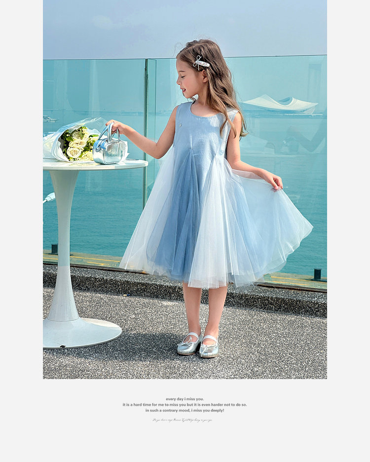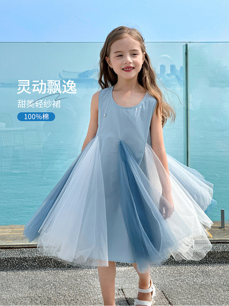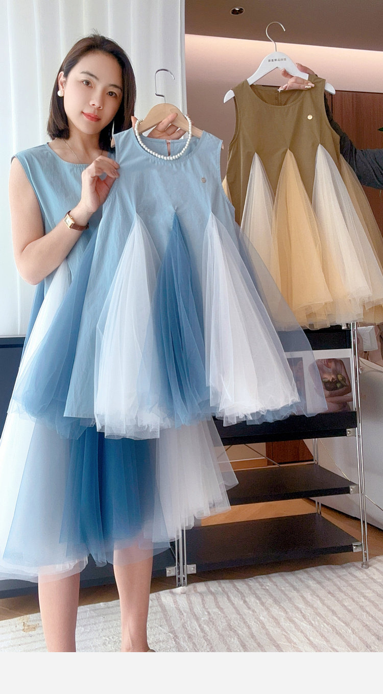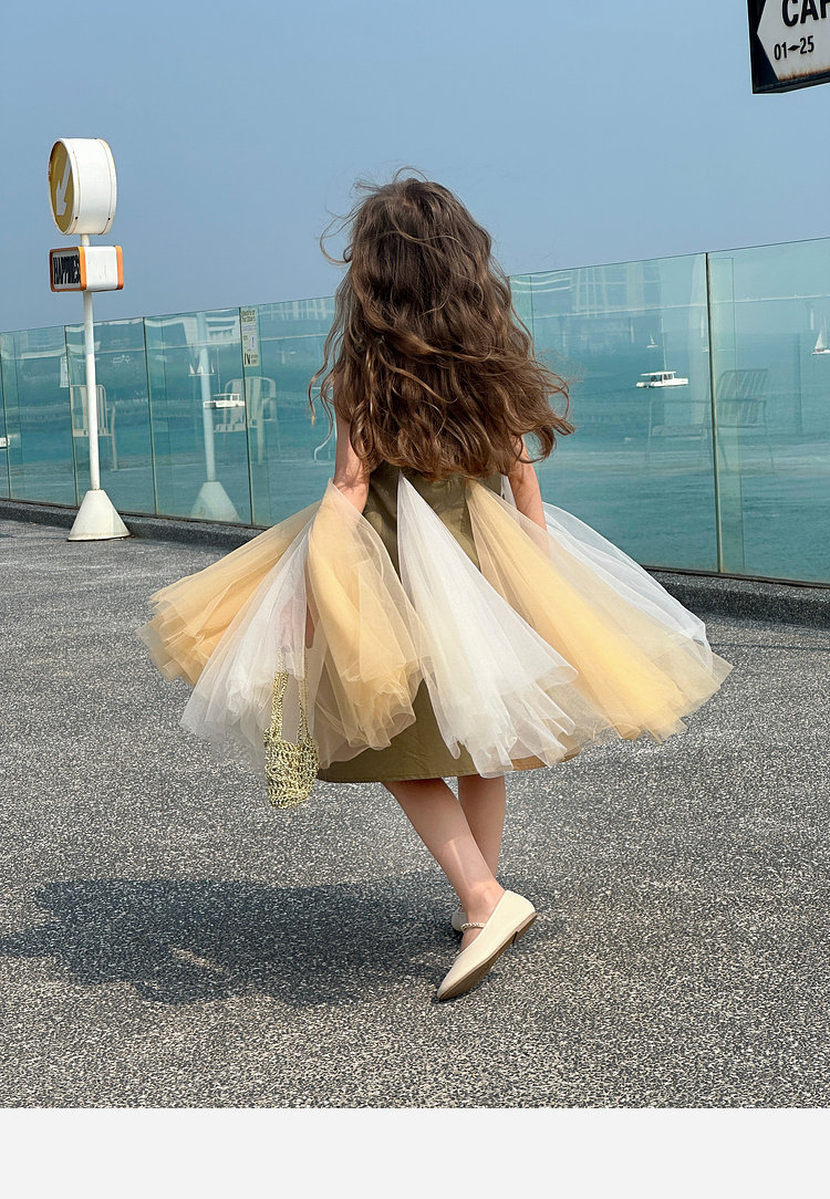 투투 코끼리 소녀의 원피스 2025 여름 스마트 우아한 빛 베일 스커트 2 색 빛 조끼 공주 스커트스토어 가기
