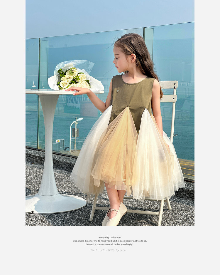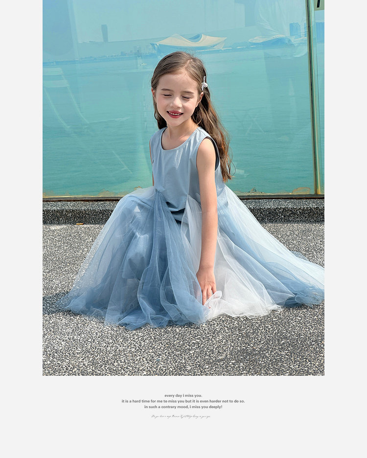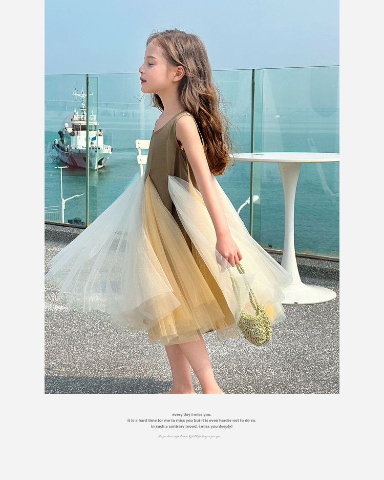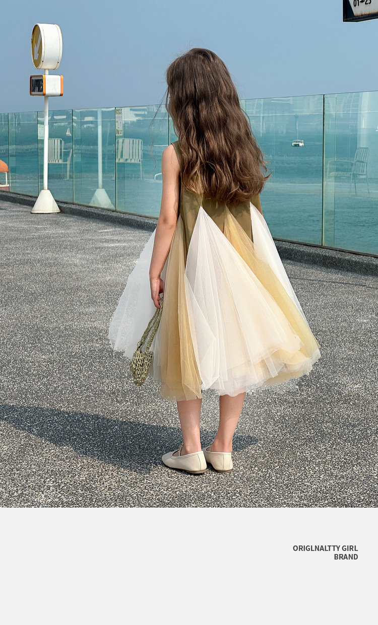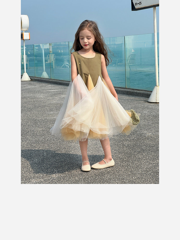 투투 코끼리 소녀의 원피스 2025 여름 스마트 우아한 빛 베일 스커트 2 색 빛 조끼 공주 스커트