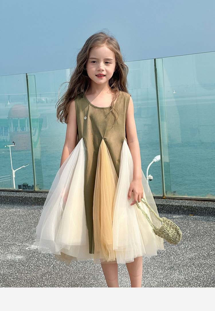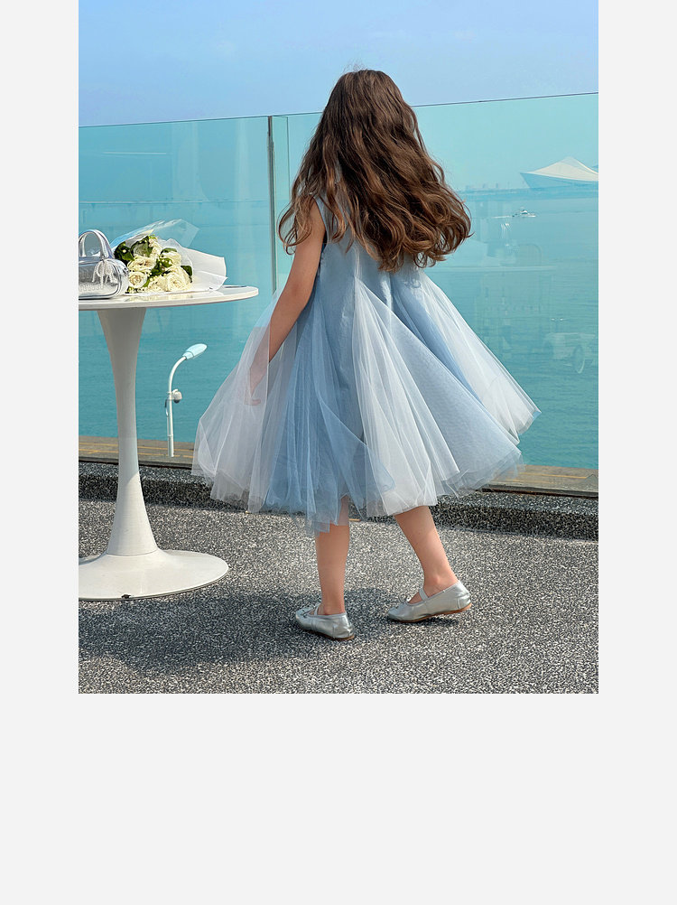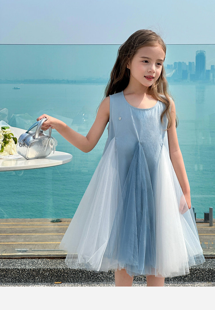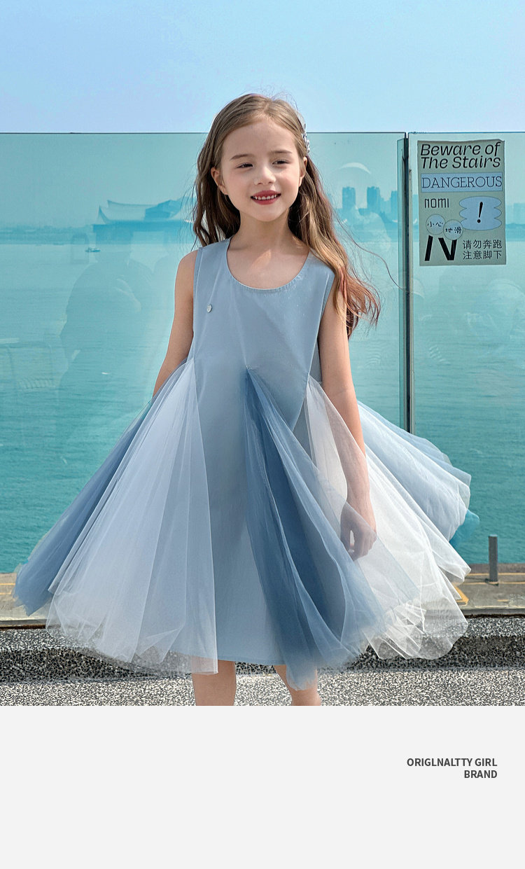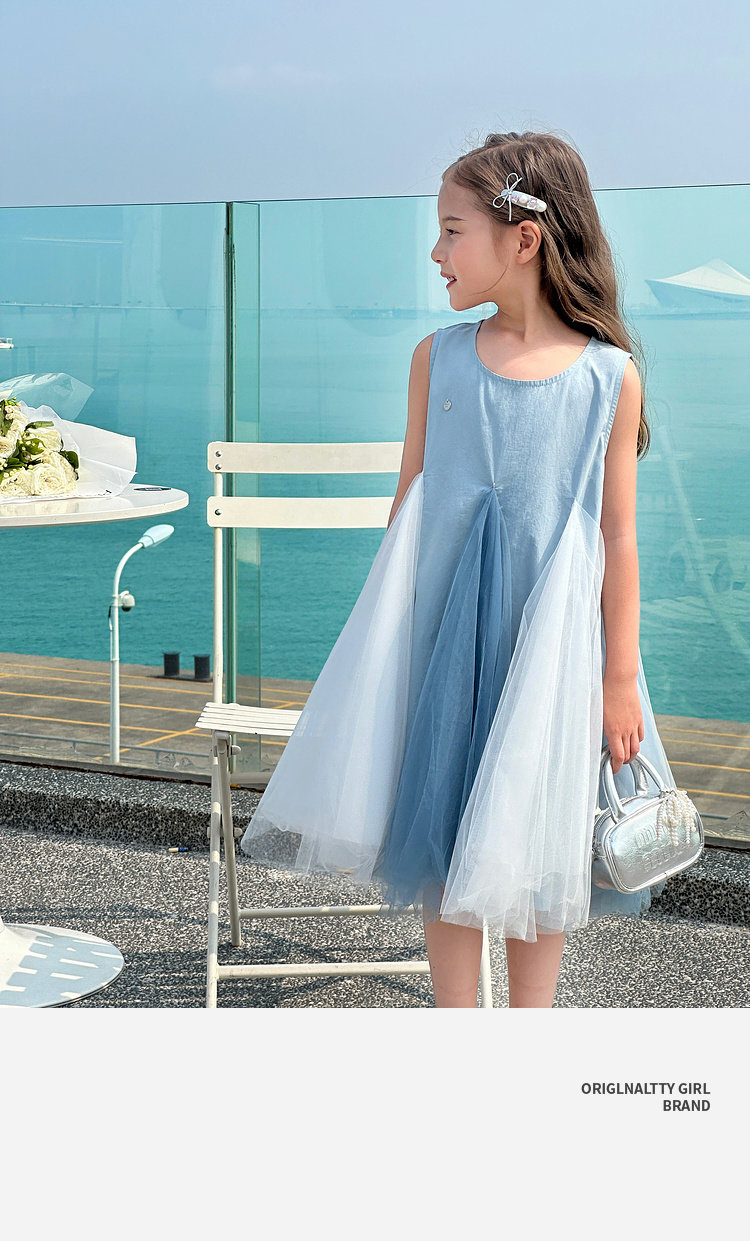 투투 코끼리 소녀의 원피스 2025 여름 스마트 우아한 빛 베일 스커트 2 색 빛 조끼 공주 스커트
