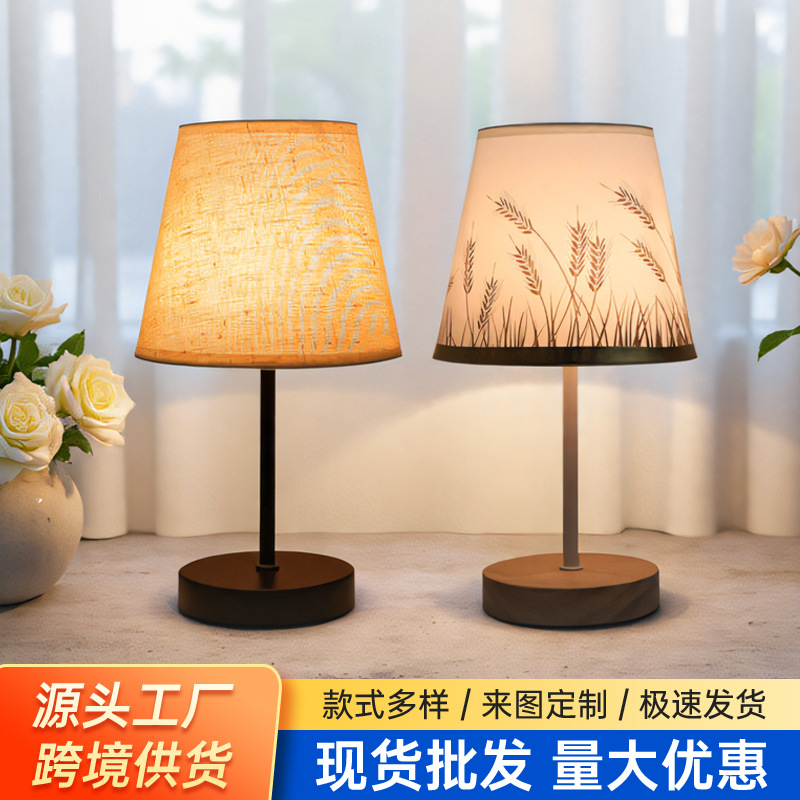 단단한 나무 직물 USB 작은 테이블 램프 침실 침대 옆 램프 연구 기숙사 led 밤 빛 창조적 인 분위기 램프 장식