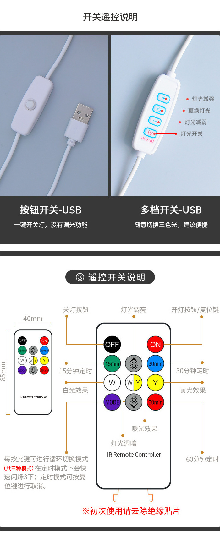 • USB [3색 조명] 리모컨 디밍 + 타이밍