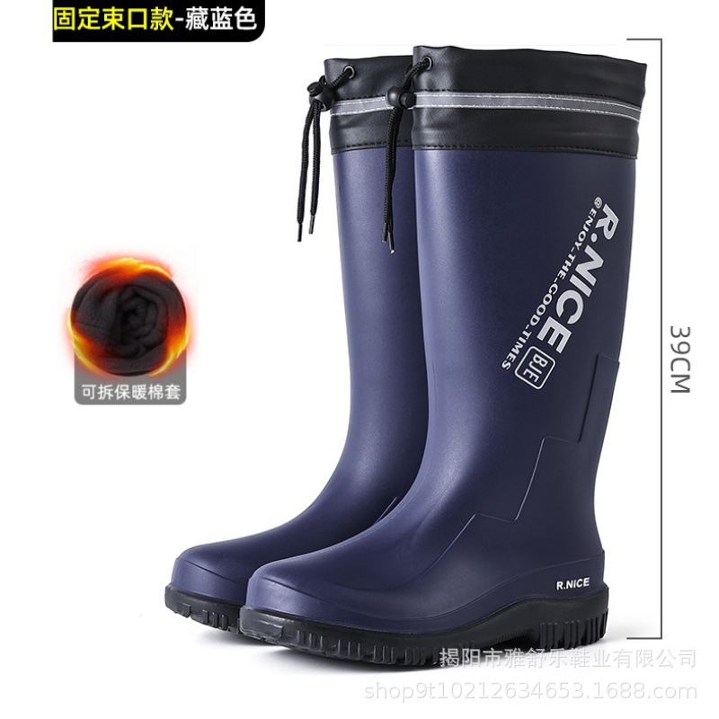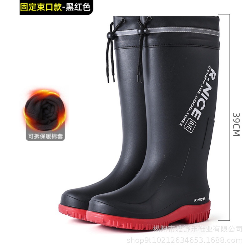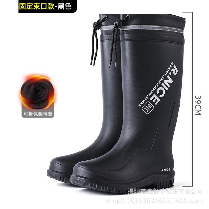 남성용 레인부츠, 신형 면 성인용 하이탑 방수화, 롱 튜브 미끄럼 방지 워터부츠, 조임끈 수축구 레인부츠, 고무신