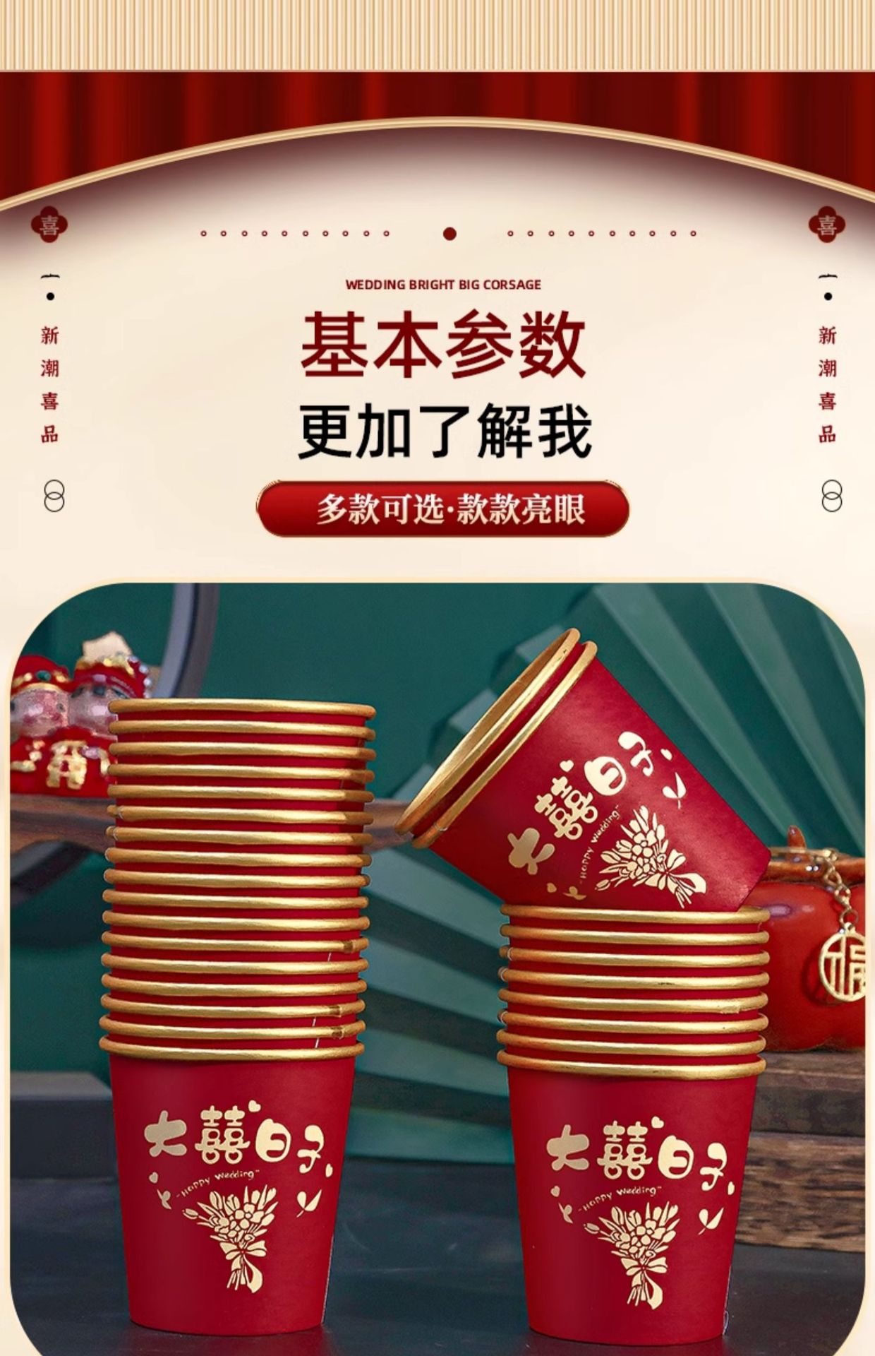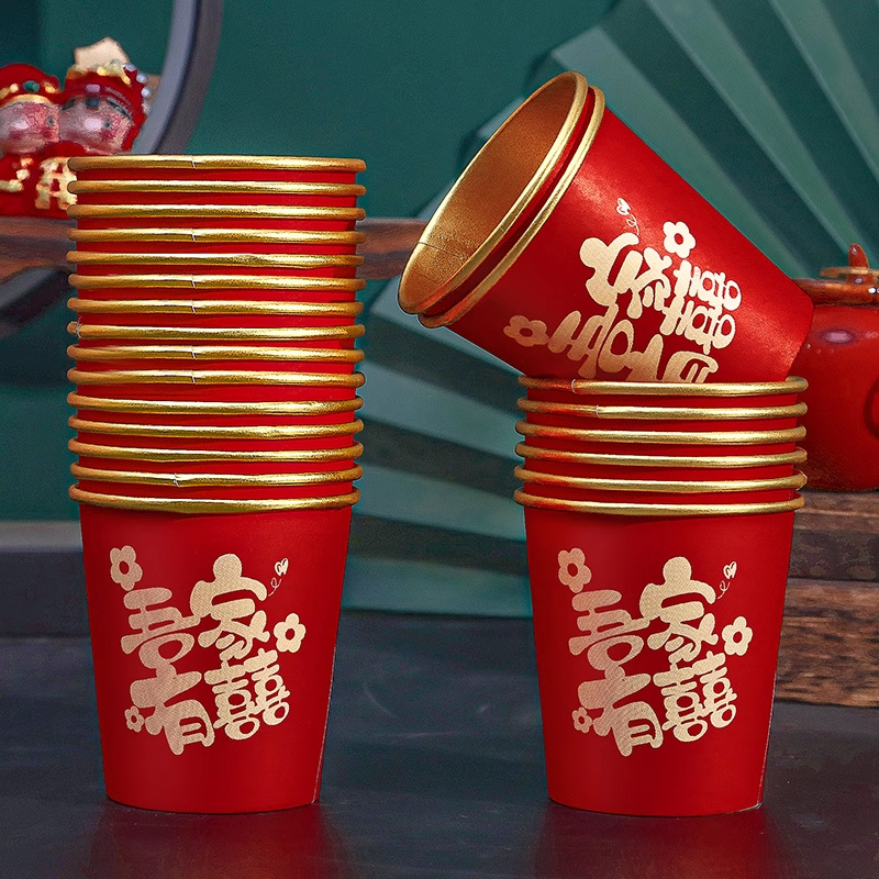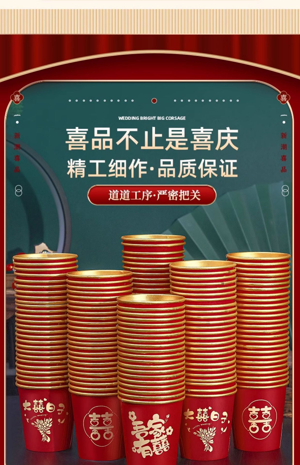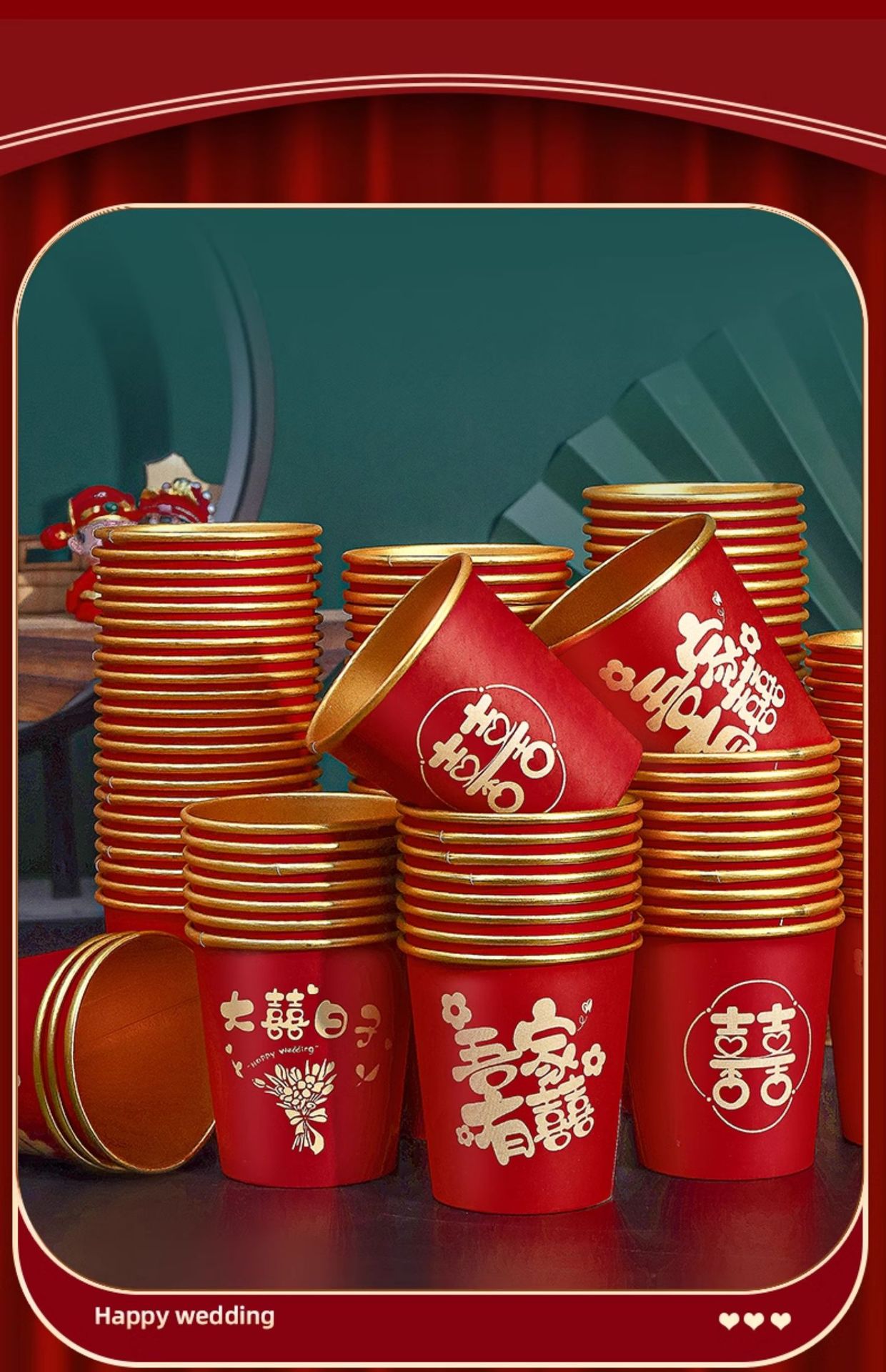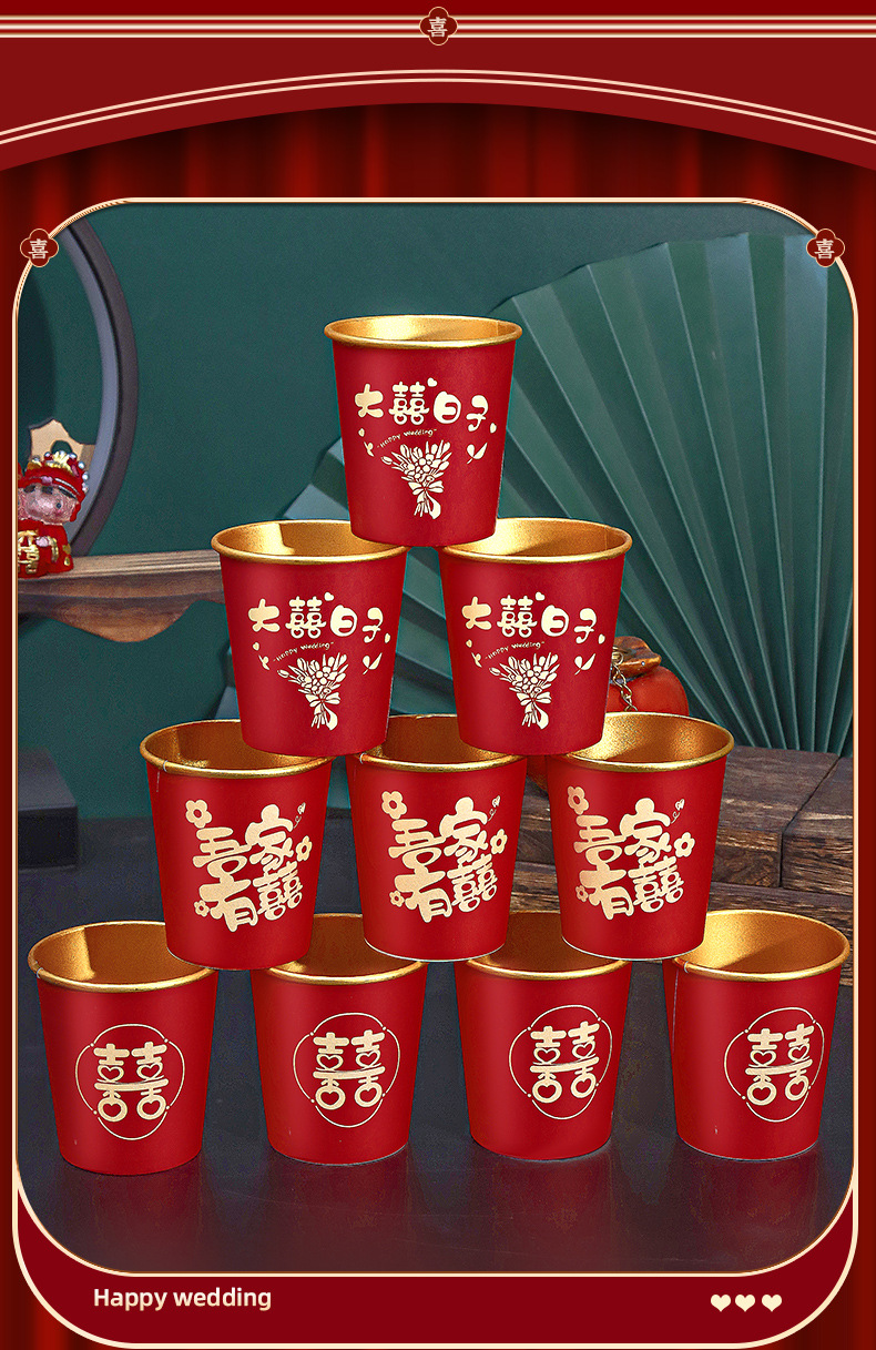 웨딩 용품 웨딩 컵 두꺼운 빨간 종이 컵 일회용 약혼 물 컵 웨딩 연회 홈 웨딩 축하