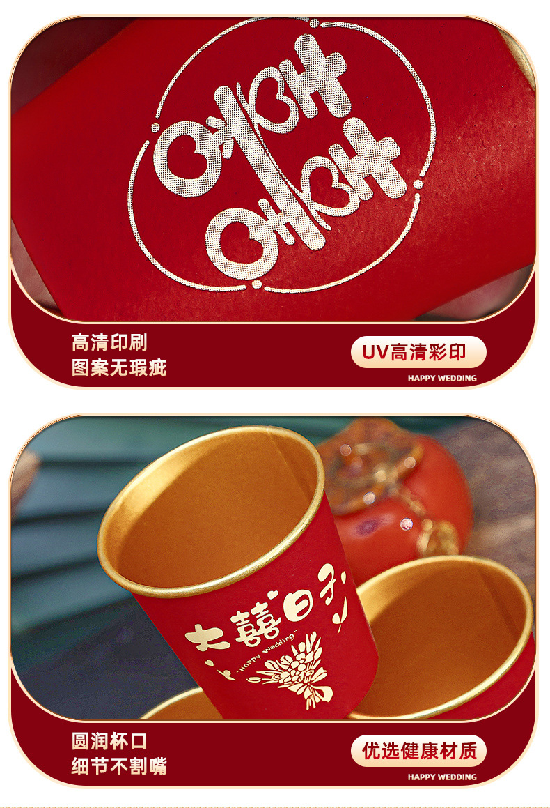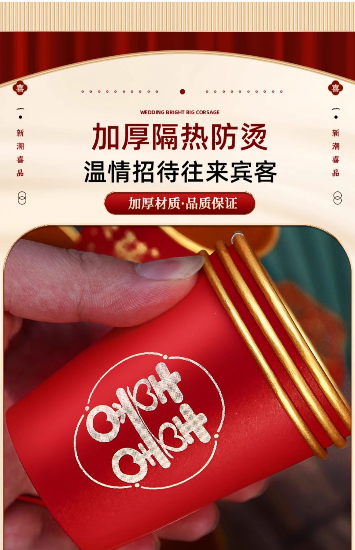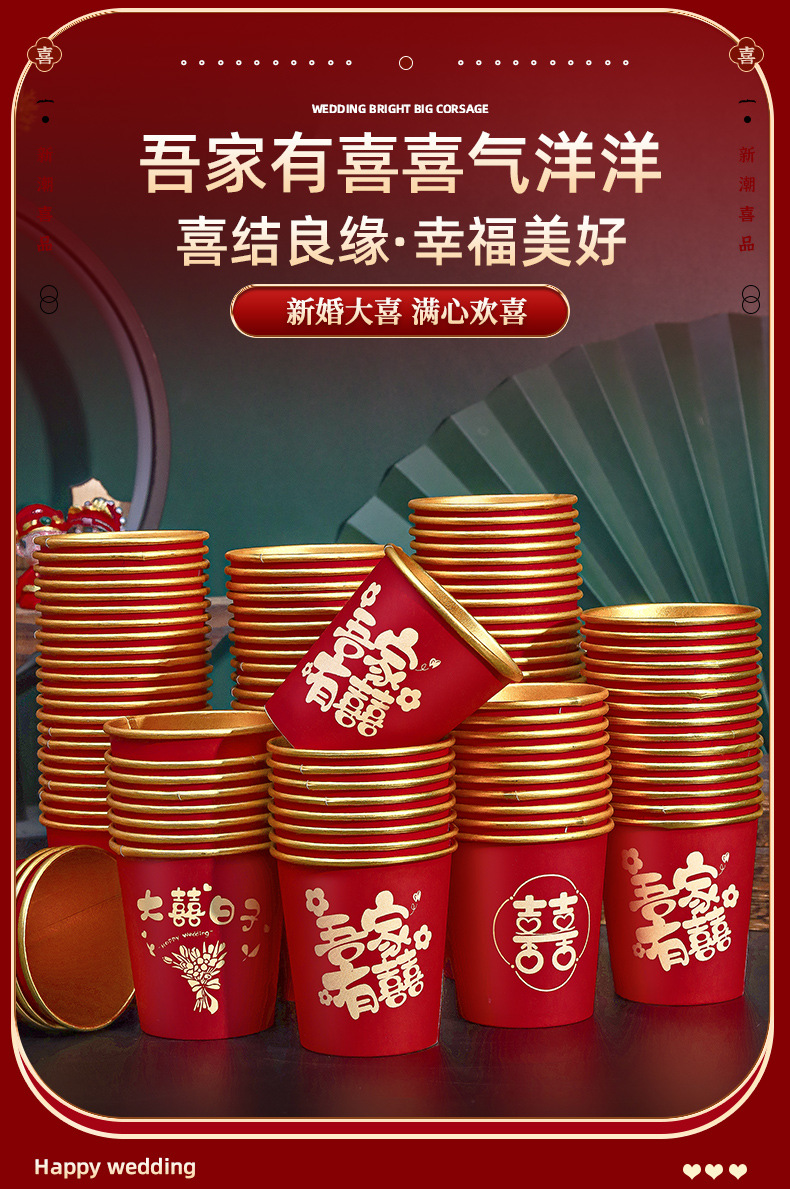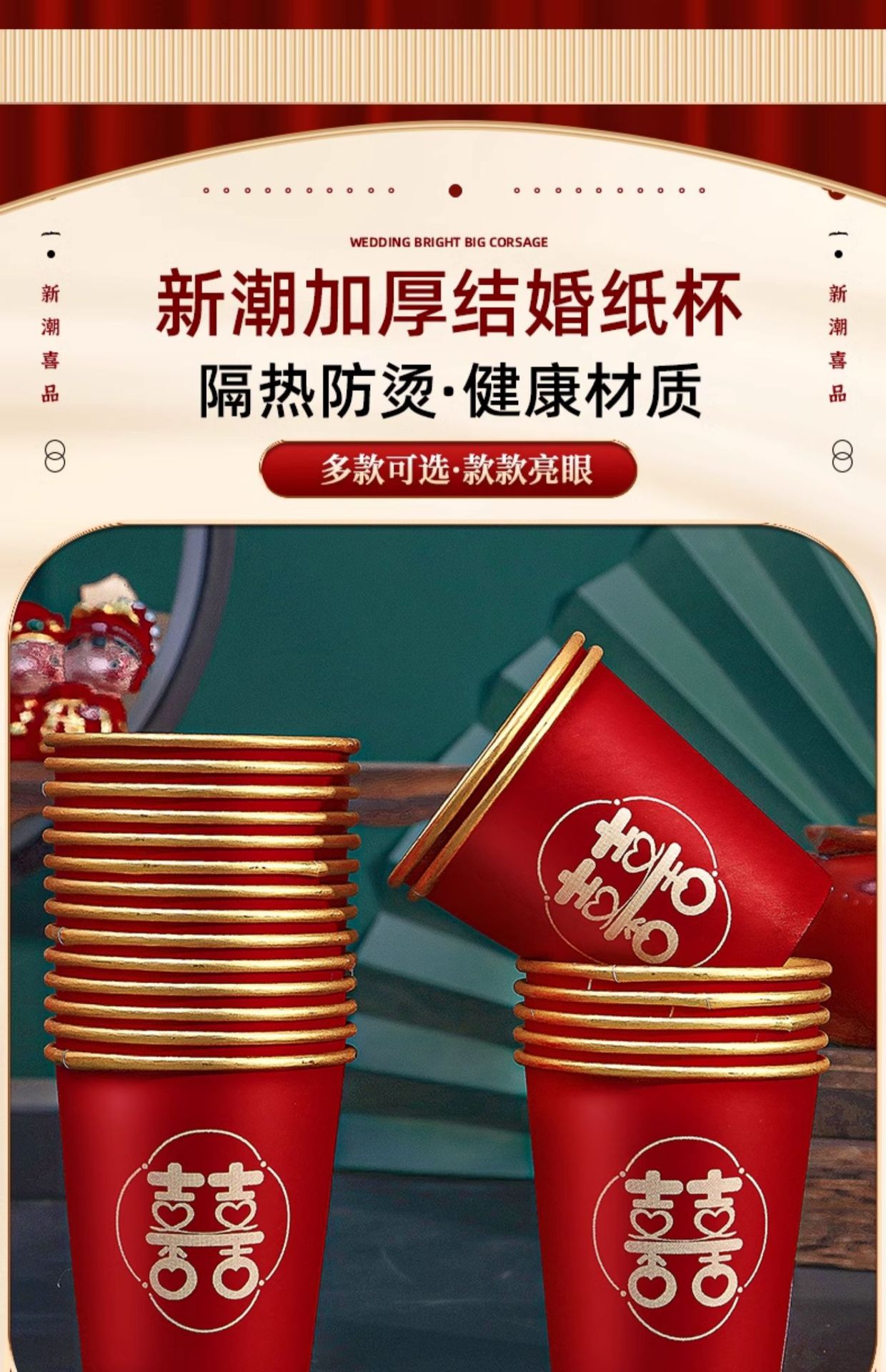 웨딩 용품 웨딩 컵 두꺼운 빨간 종이 컵 일회용 약혼 물 컵 웨딩 연회 홈 웨딩 축하
