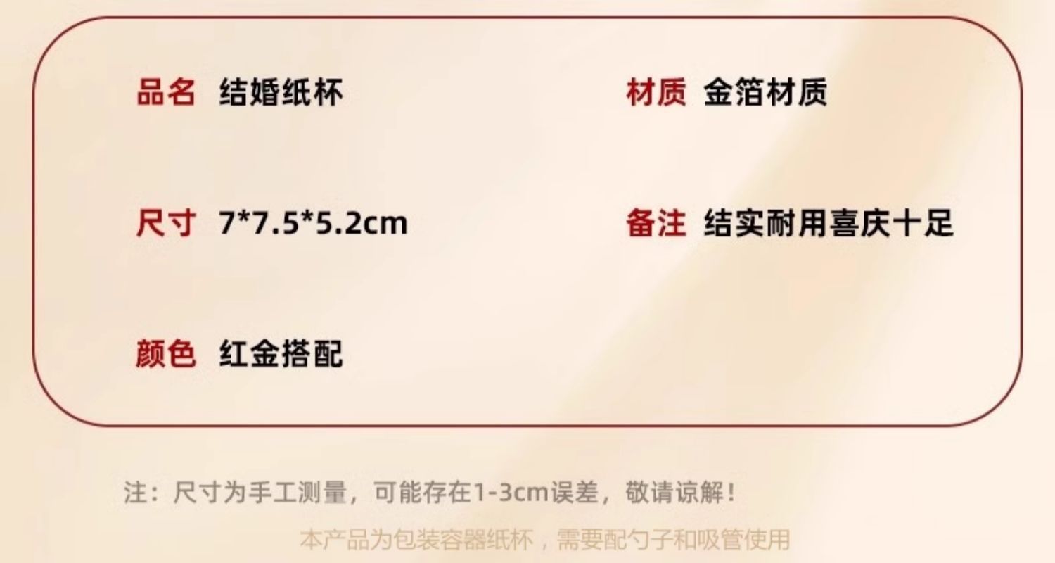 웨딩 용품 웨딩 컵 두꺼운 빨간 종이 컵 일회용 약혼 물 컵 웨딩 연회 홈 웨딩 축하스토어 가기