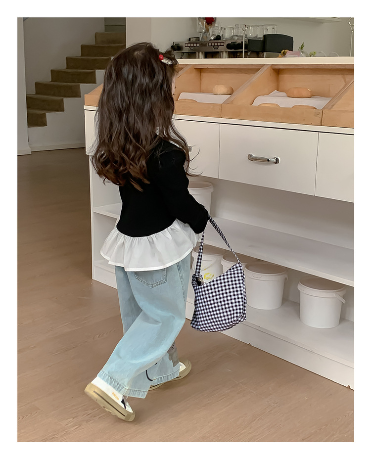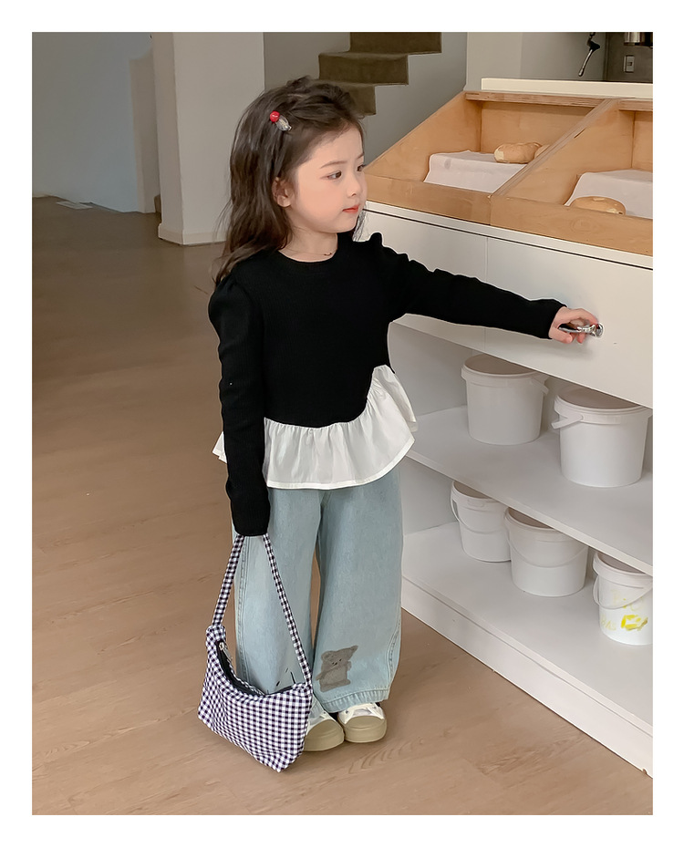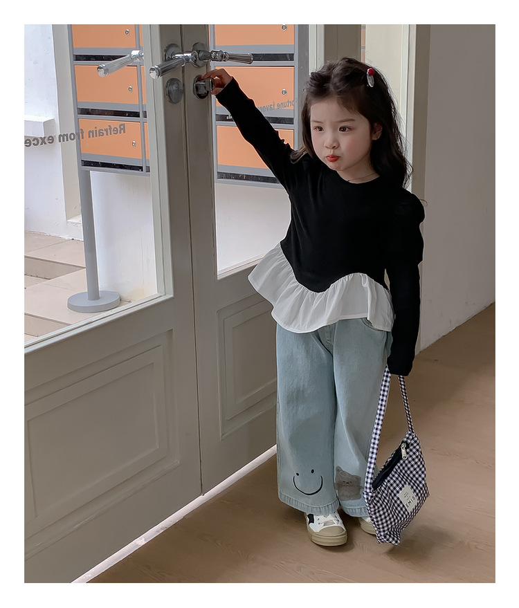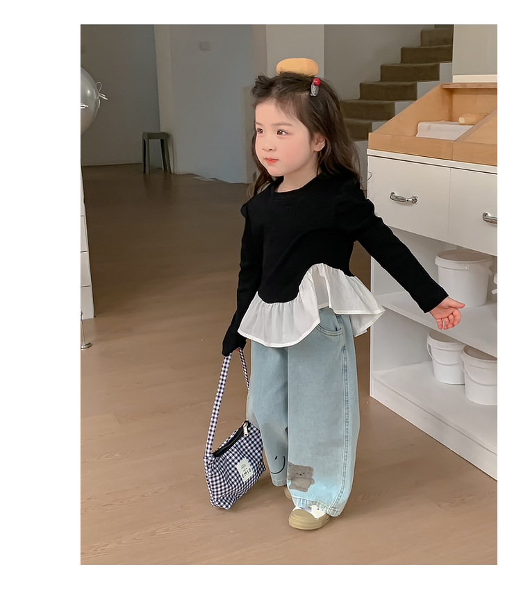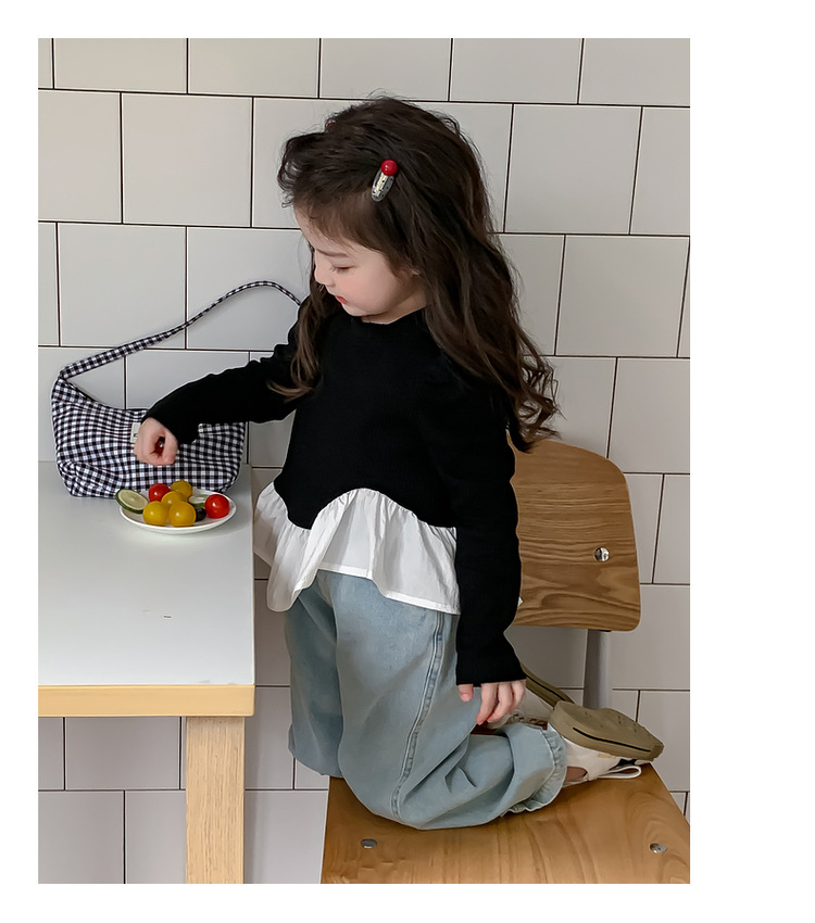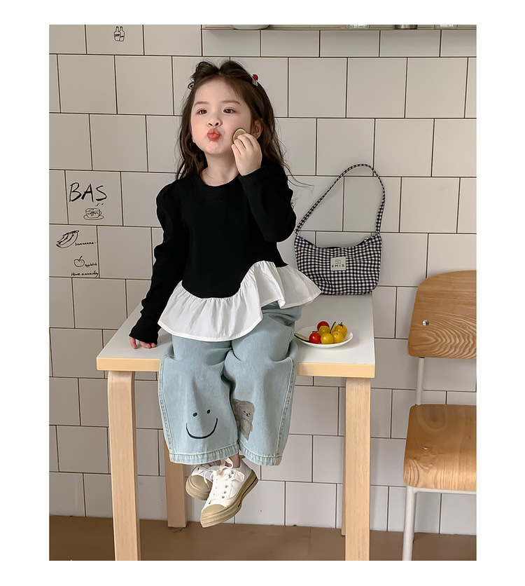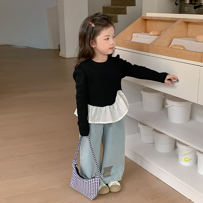 어린이 센 어린이 말 소녀 봄 긴팔 티셔츠 2025 새로운 한국 어린이 서양식 러플 스티치베이스 셔츠스토어 가기