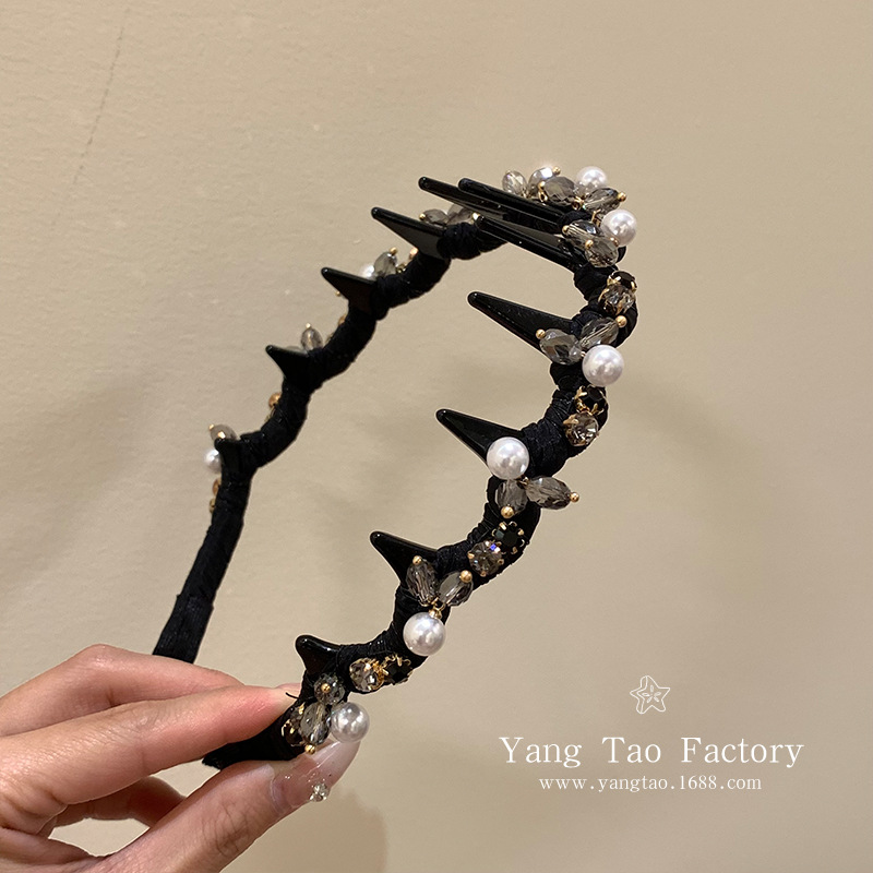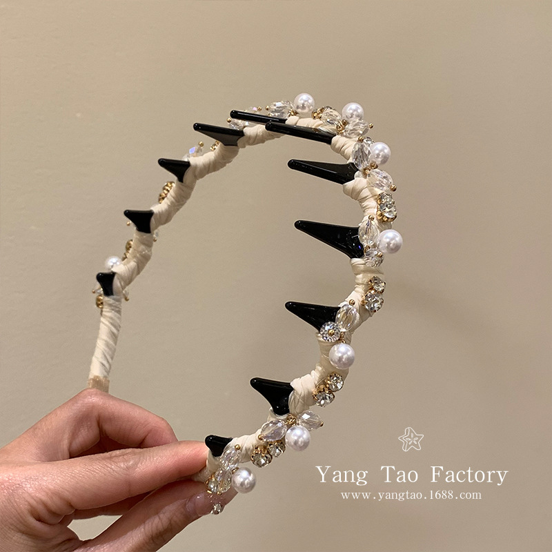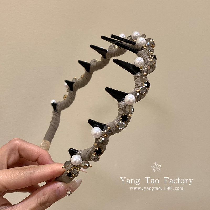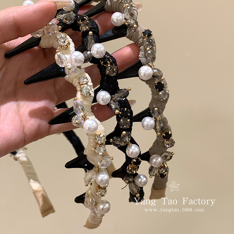 중공업 크리스탈 진주 반전 헤어 밴드 여성 2025 새로운 높은 두개골 탑 우아한 고급 머리띠 헤어 액세서리스토어 가기