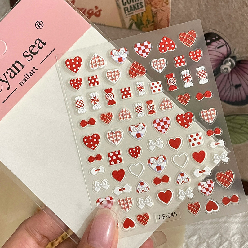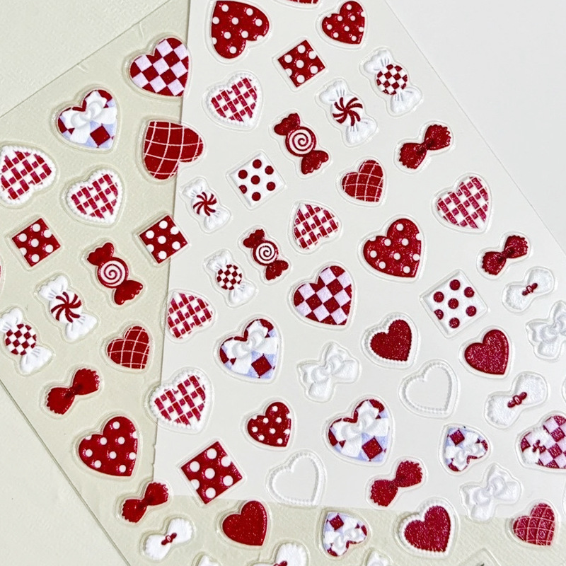 인터넷 연예인 같은 스타일 사랑 축제 격자 무늬 네일 아트 스티커 양각 나비 네일 입체 diy 스티커 도매 재고 있음