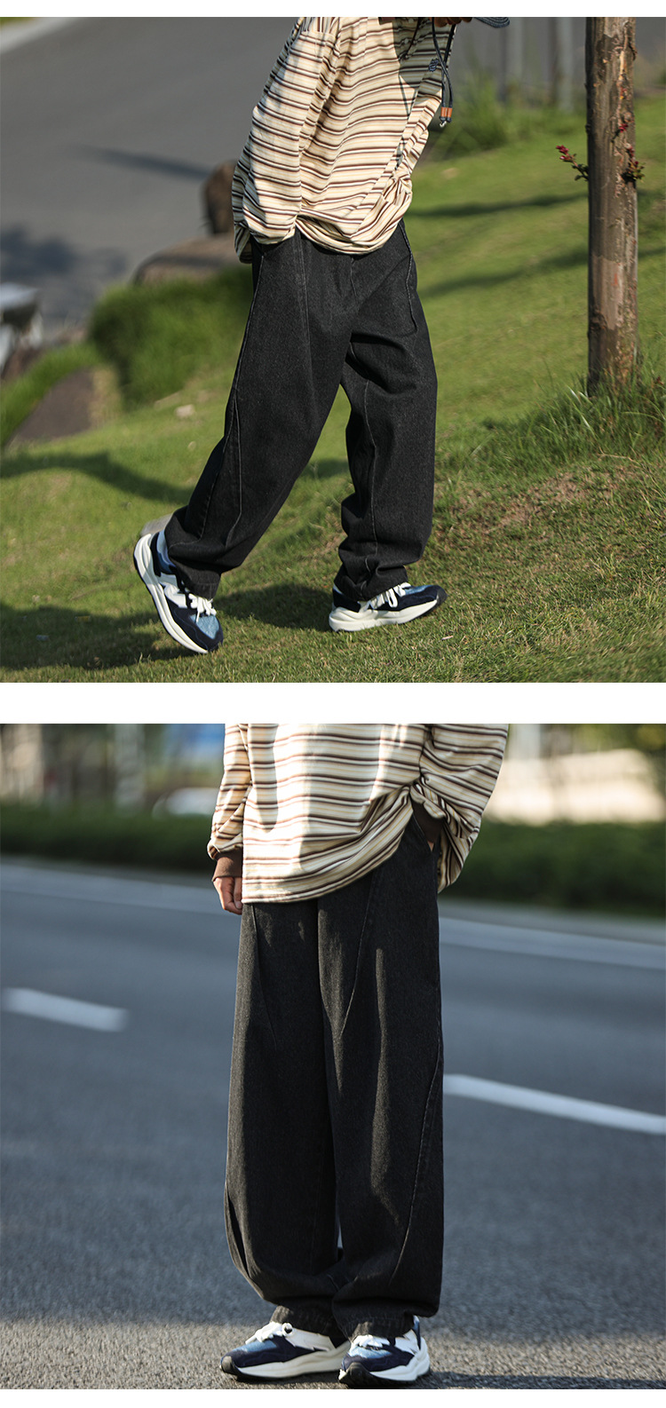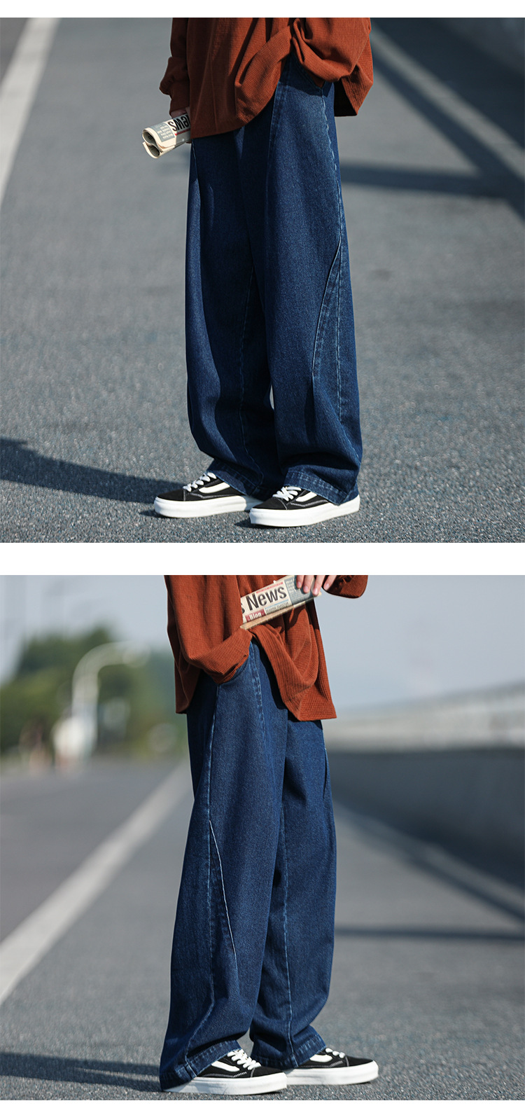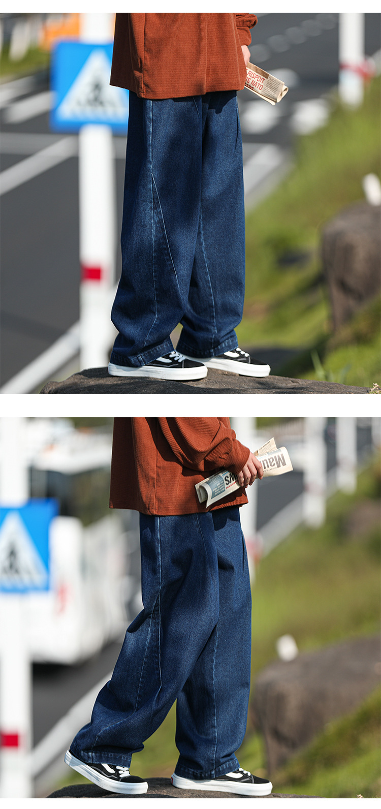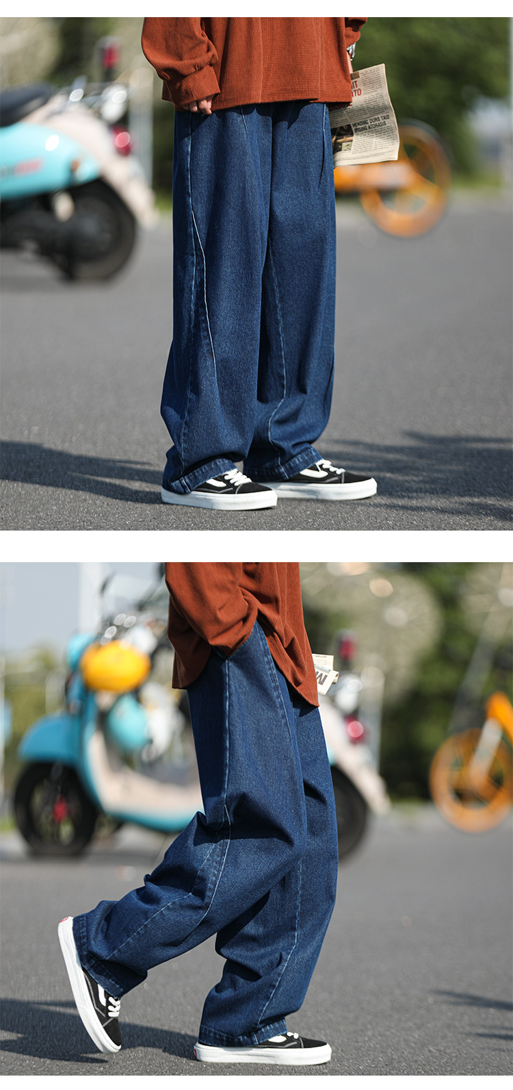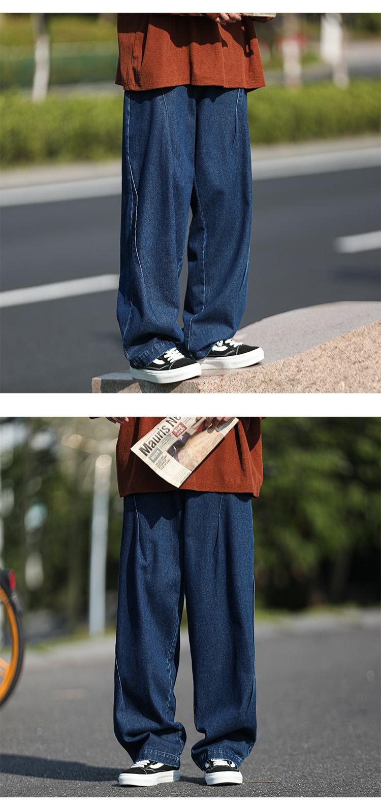 일본 도시 소년 청바지 남성 스트레이트-다리 느슨한 넓은 다리 바지 가을 패션 브랜드 레트로 오버 사이즈 클로 바지스토어 가기