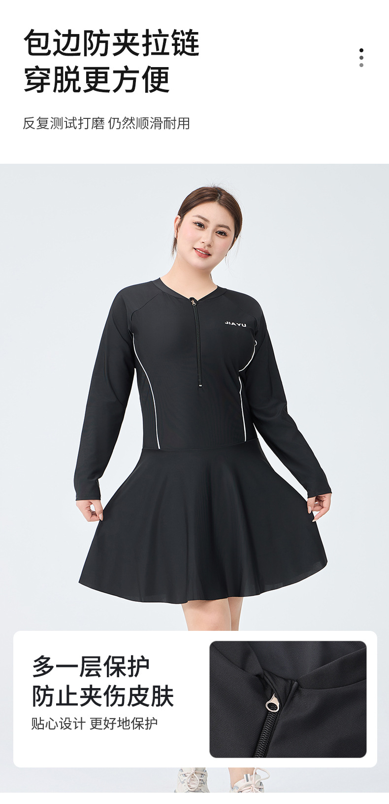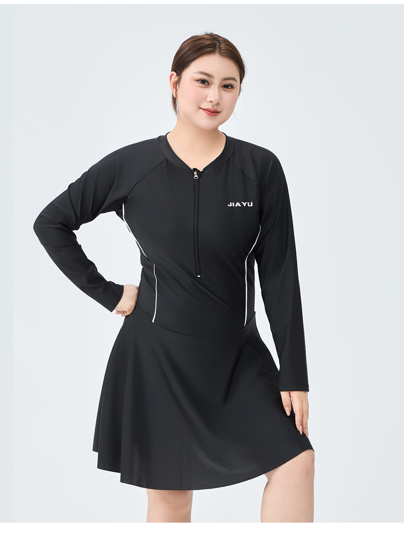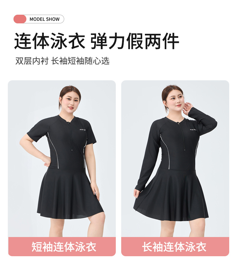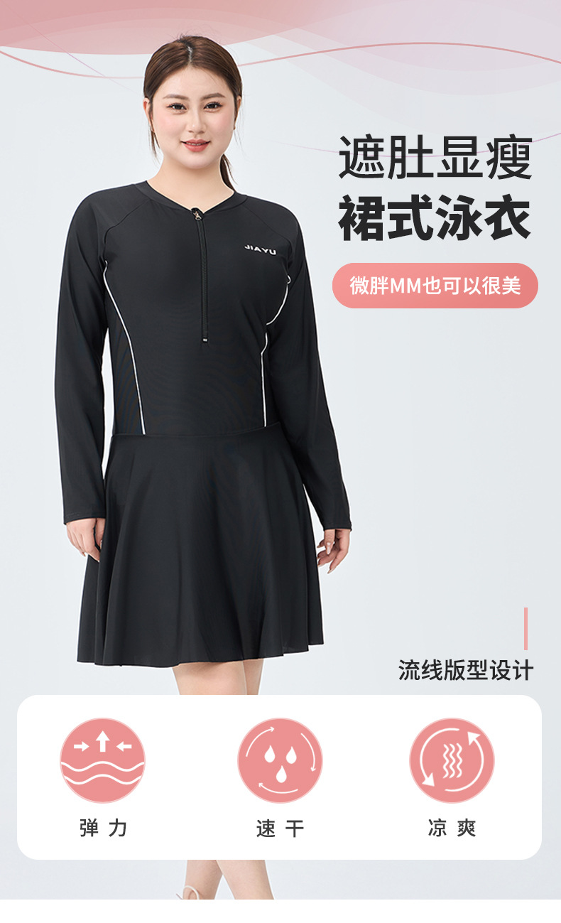플러스 사이즈 여자 수영복 스포츠 긴팔 원피스 플랫 앵글 보수적 배꼽 치마 100.00kg 통통녀 온천 수영복스토어 가기