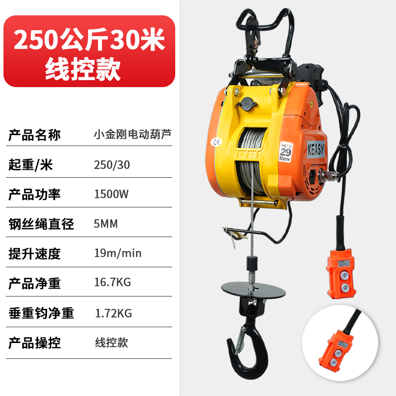 Kt Xiaojingang 전기 호이스트 220V 원격 제어 크레인 소형 가정용 리프팅 휴대용 윈치 리프팅 전기 호이스트