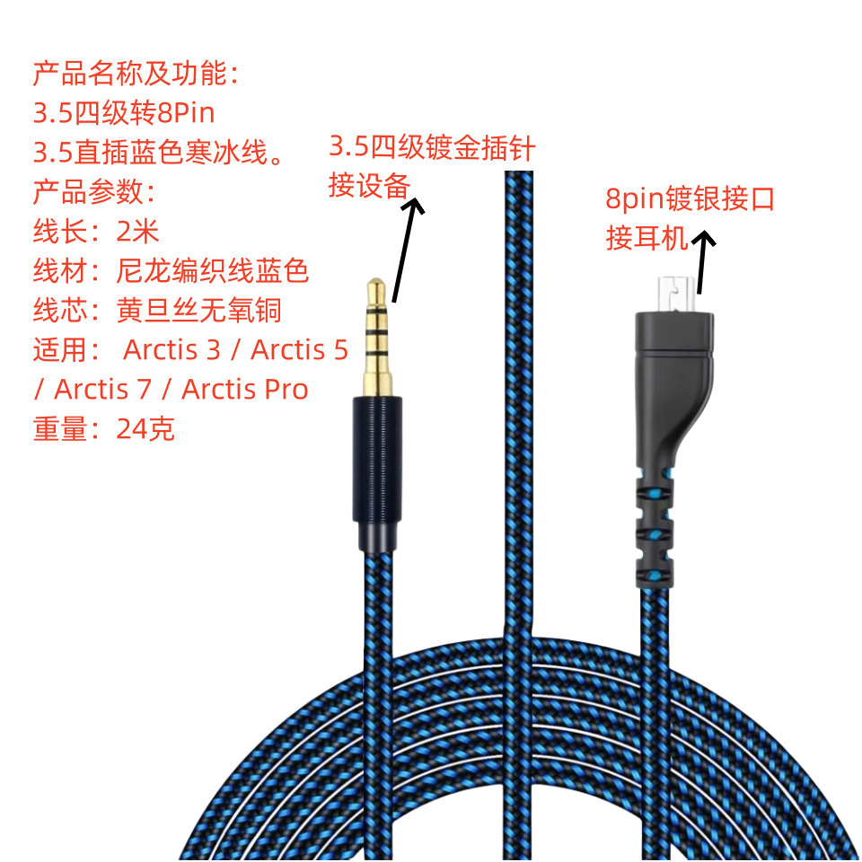 Arctis 3/Arctis 5/Arctis 7 헤드폰 케이블에 적합 Ice 2m 브레이드 스트랩 어댑터 오디오 케이블스토어 가기