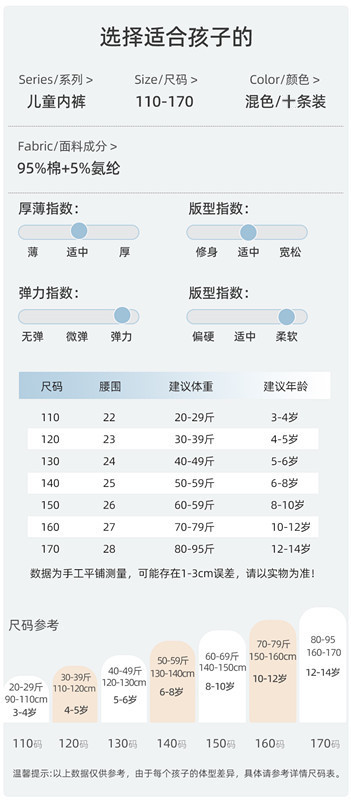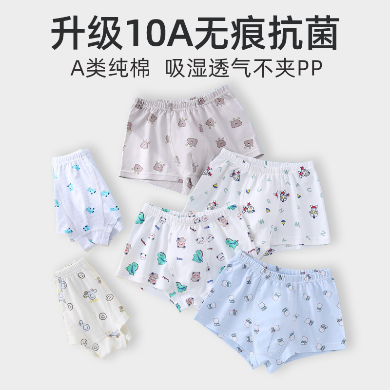 [10팩] 남아 및 여아 속옷 카테고리 A 순면 사각팬티 10A 항균 무봉제 중대형 아동 사각팬티스토어 가기