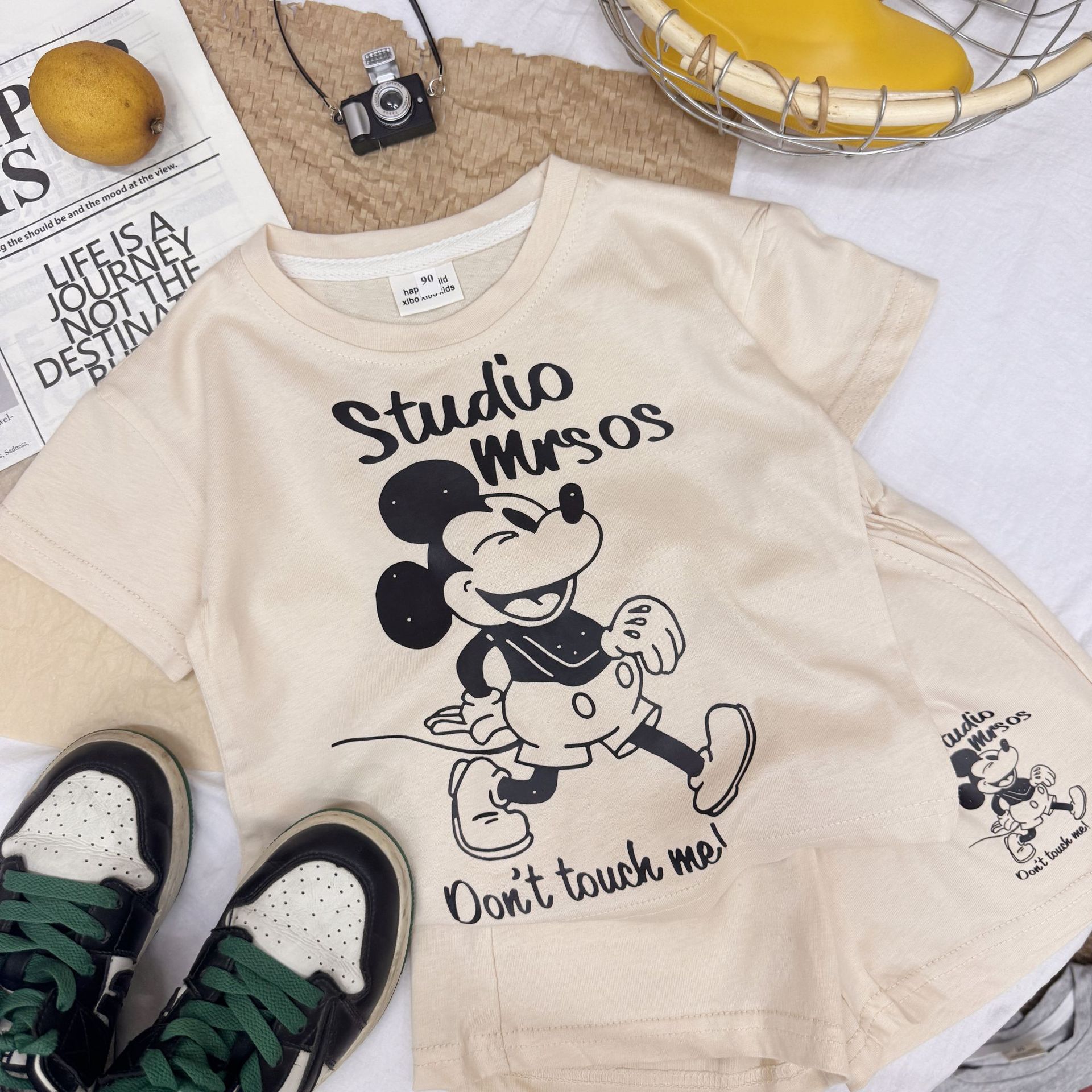 2025 년 여름 새 소년 소녀 만화 반팔 세트 아기 소녀 반팔 티셔츠 반바지 2 피스 국경 독점스토어 가기