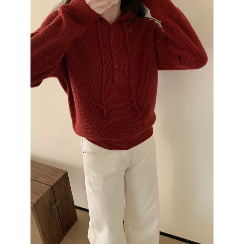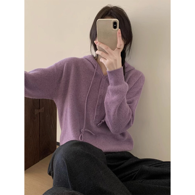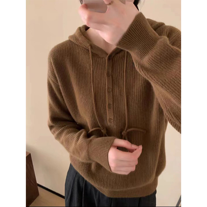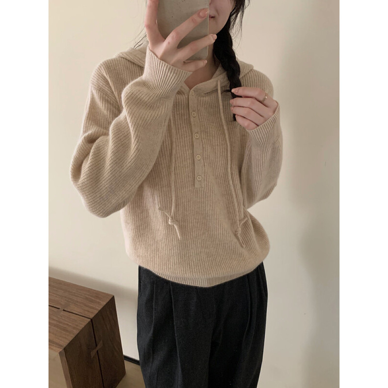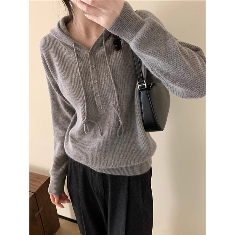 회색 후드 너구리 벨벳 풀오버 스웨터 여성의 봄과 가을 후디 게으른 스타일 두꺼운 내베이스 외부 착용 니트 스웨터스토어 가기