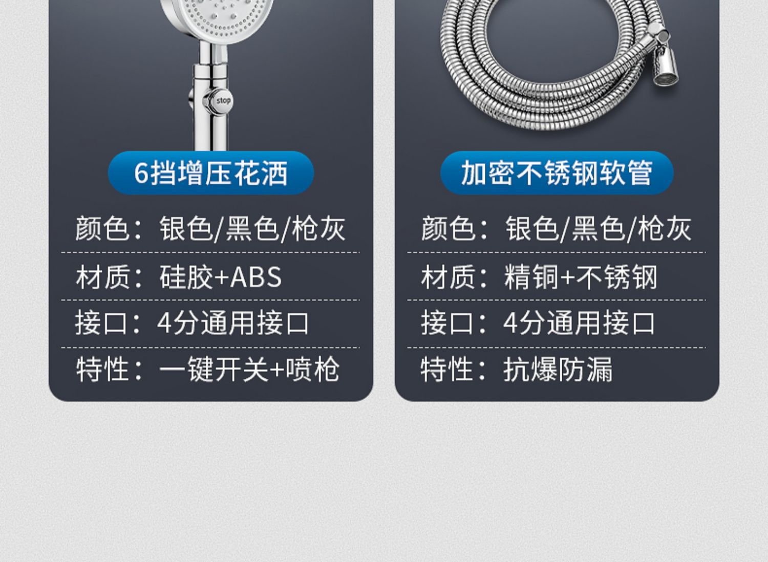 • [업그레이드된 6단 별빛하늘 그레이 세트] 6단 탑 스프레이 + 6단 핸드 스프레이 + 1.5m 방폭 호스