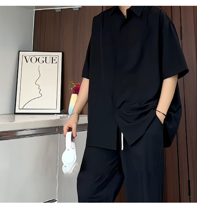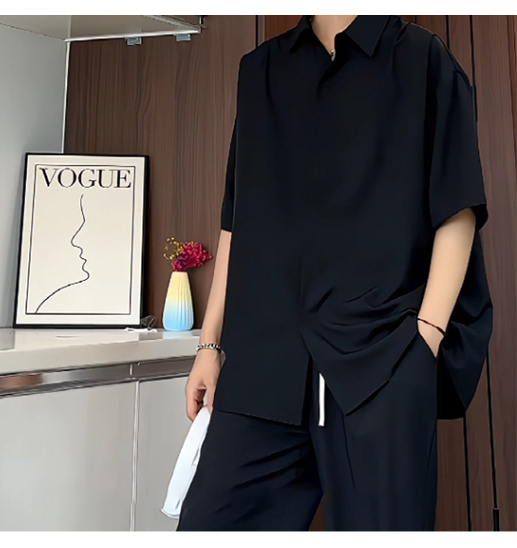 유럽 상품 고급 기질 올 매치 느슨한 옷깃 셔츠 2024 여름 새로운 도착 느슨한 싱글 브레스트 탑 남성 패션