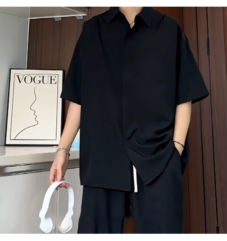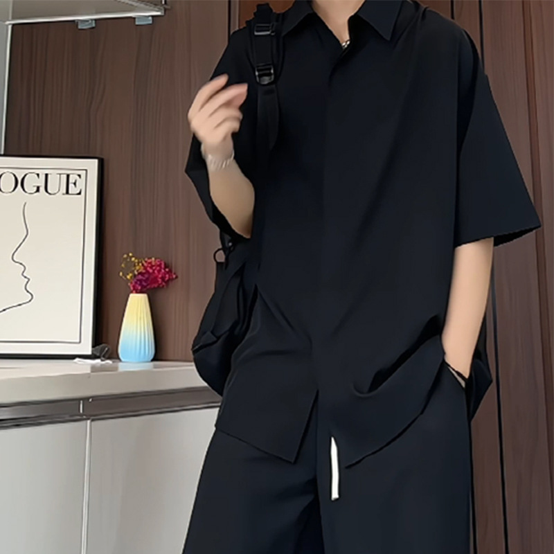 유럽 상품 고급 기질 올 매치 느슨한 옷깃 셔츠 2024 여름 새로운 도착 느슨한 싱글 브레스트 탑 남성 패션스토어 가기