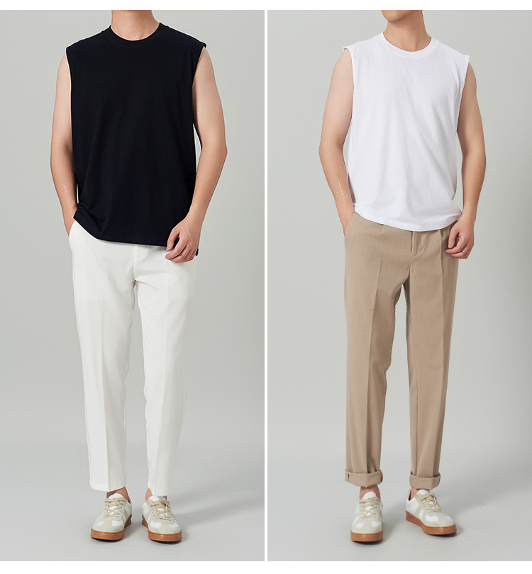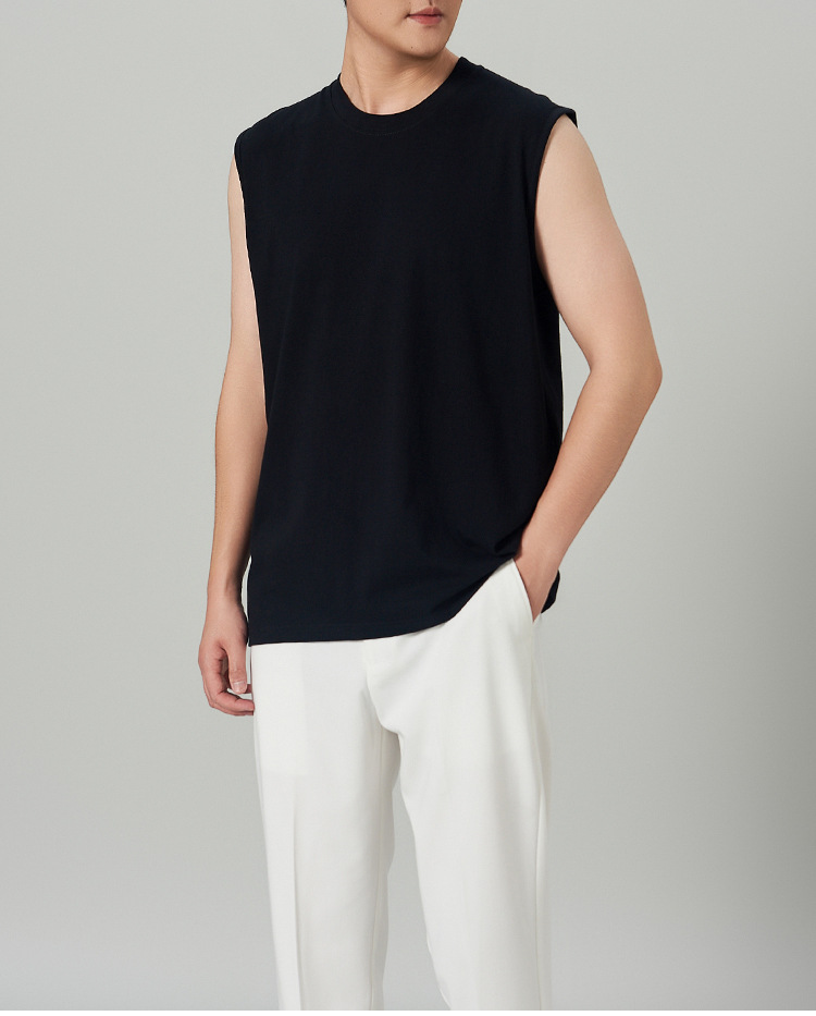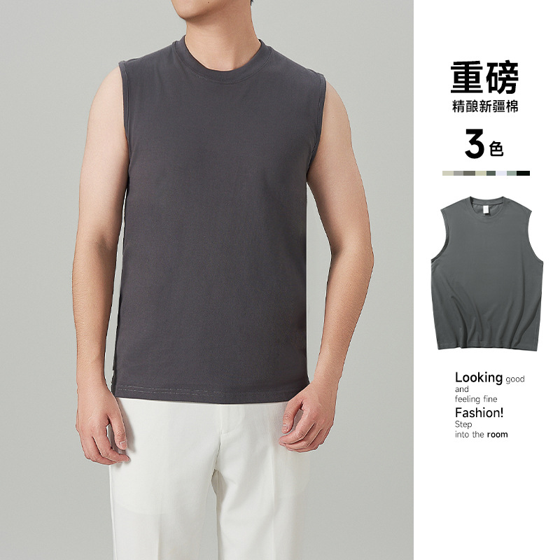민소매 티셔츠 남성용 커스텀 조끼 남성용 코튼 유니섹스 퓨어 코튼 캐주얼 루즈 여름 헤비 탑 트렌디스토어 가기