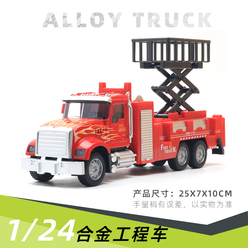뜨거운 판매 대형 1/24 어린이 합금 풀백 시뮬레이션 소방차 엔지니어링 차량 모델 자동차 소년 크로스보더