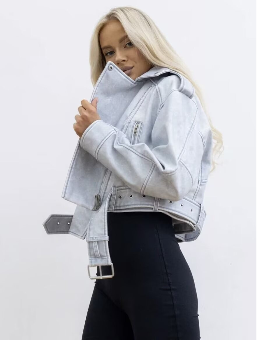 대외 무역 2025 가을 유럽과 미국 국경 간 새로운 여성용 워시 및 에로틱 오토바이 패션 재킷 가죽 재킷스토어 가기