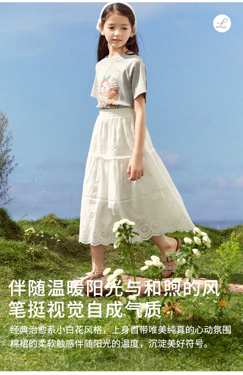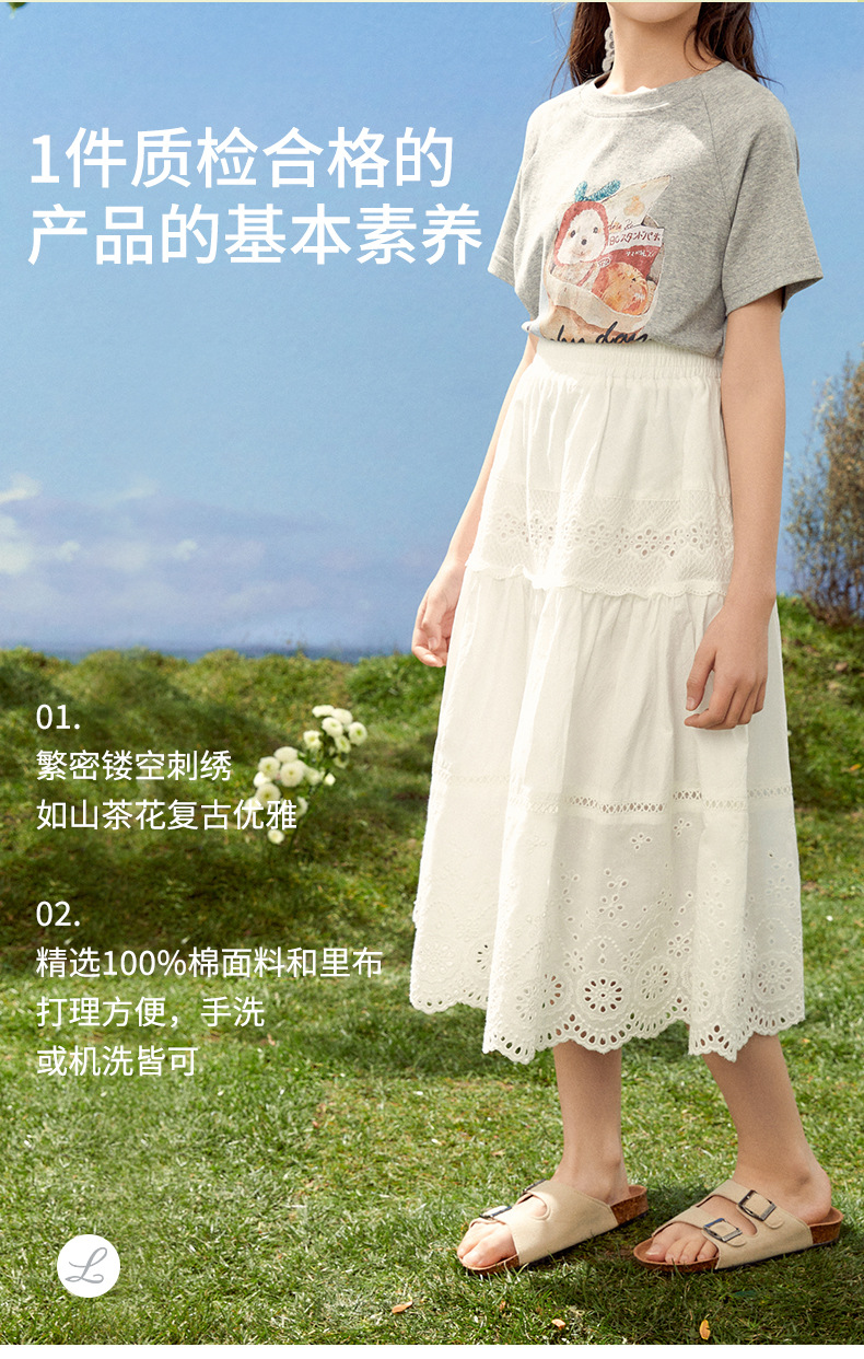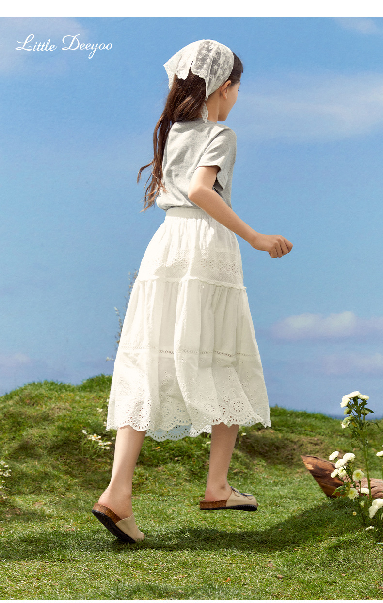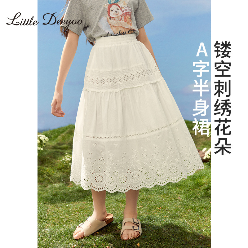 여자 속이 빈 자수 꽃 스커트 2025 봄 여름 새로운 스타일 어린 소녀 순수 코튼 피부 친화적인 다용도 A 라인 스커트스토어 가기