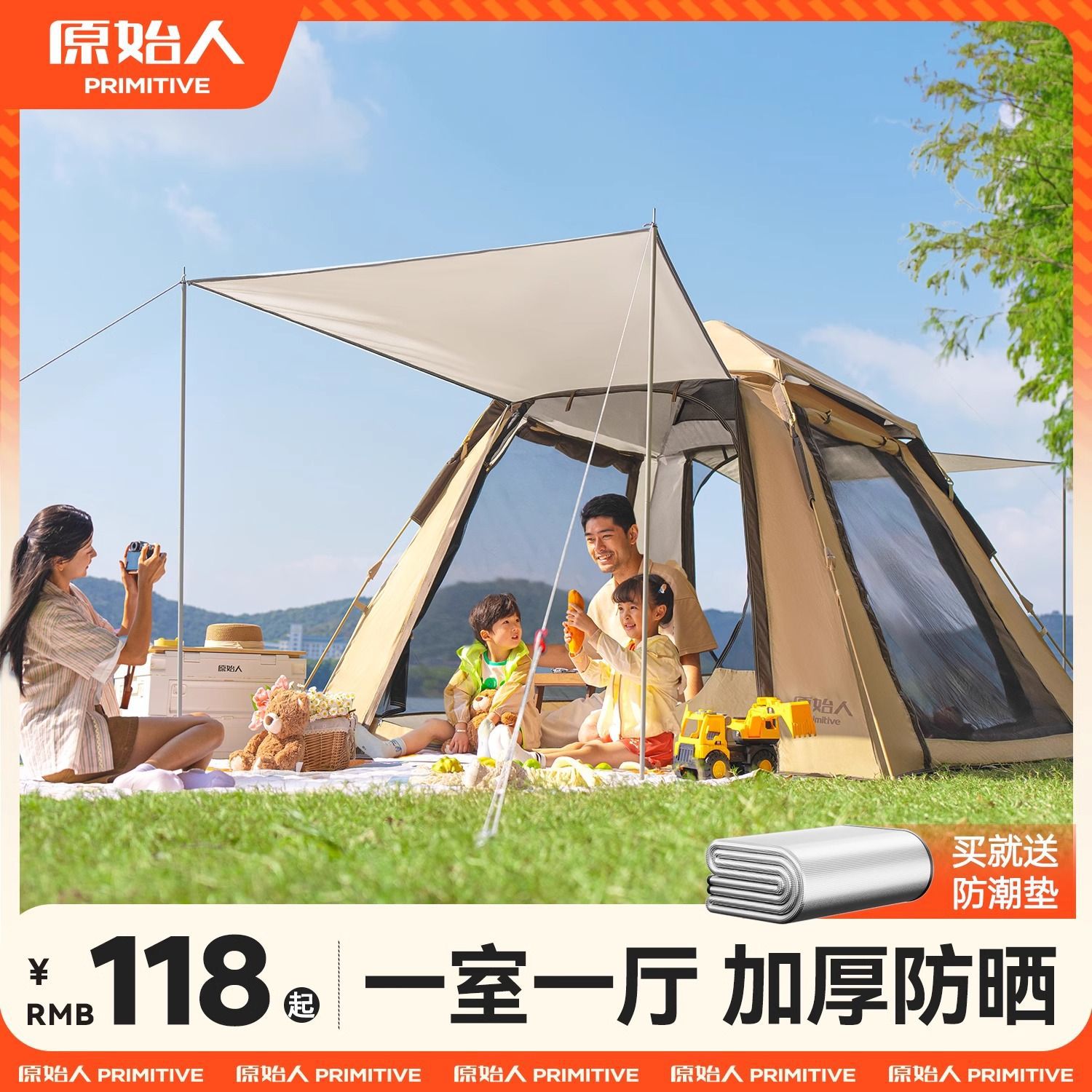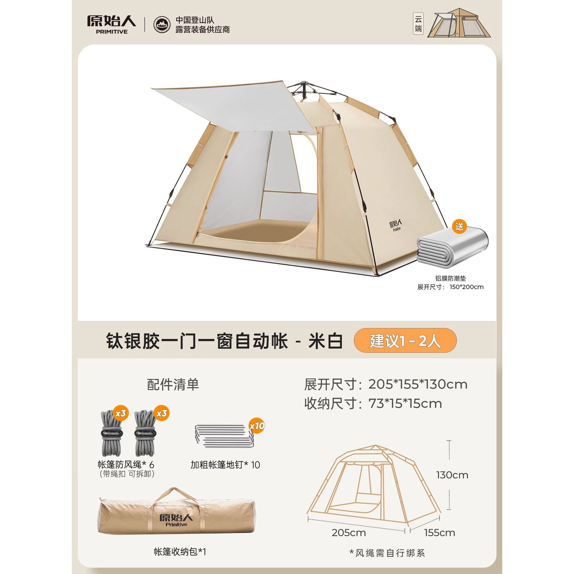 원시 텐트 블랙 접착제 야외 휴대용 자동 필드 캠핑 장비 전체 세트 야영 밤새 두꺼운 비방스토어 가기