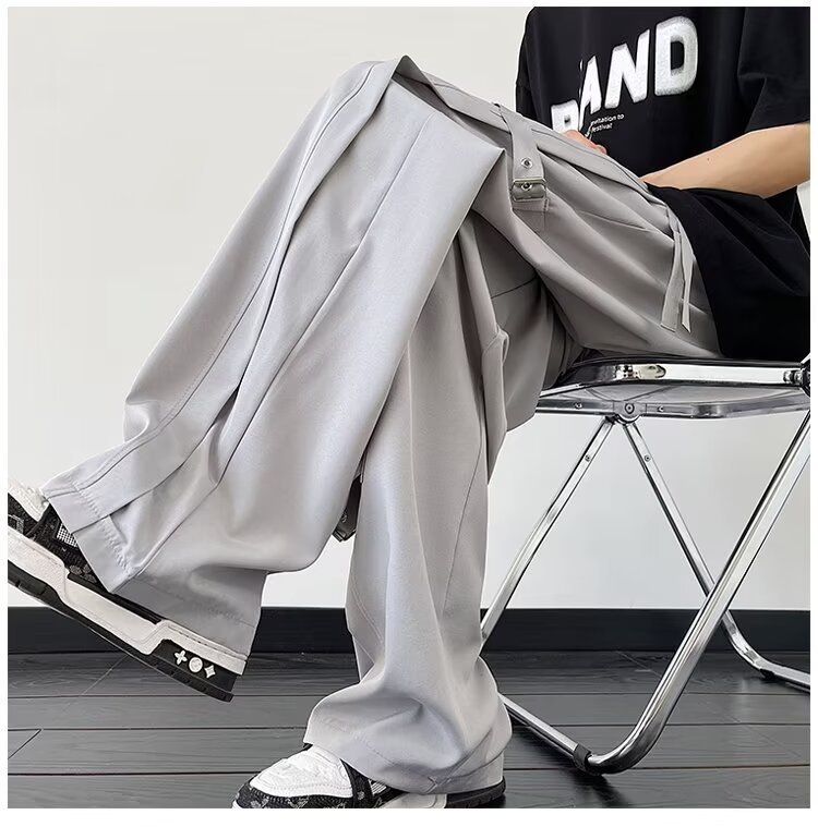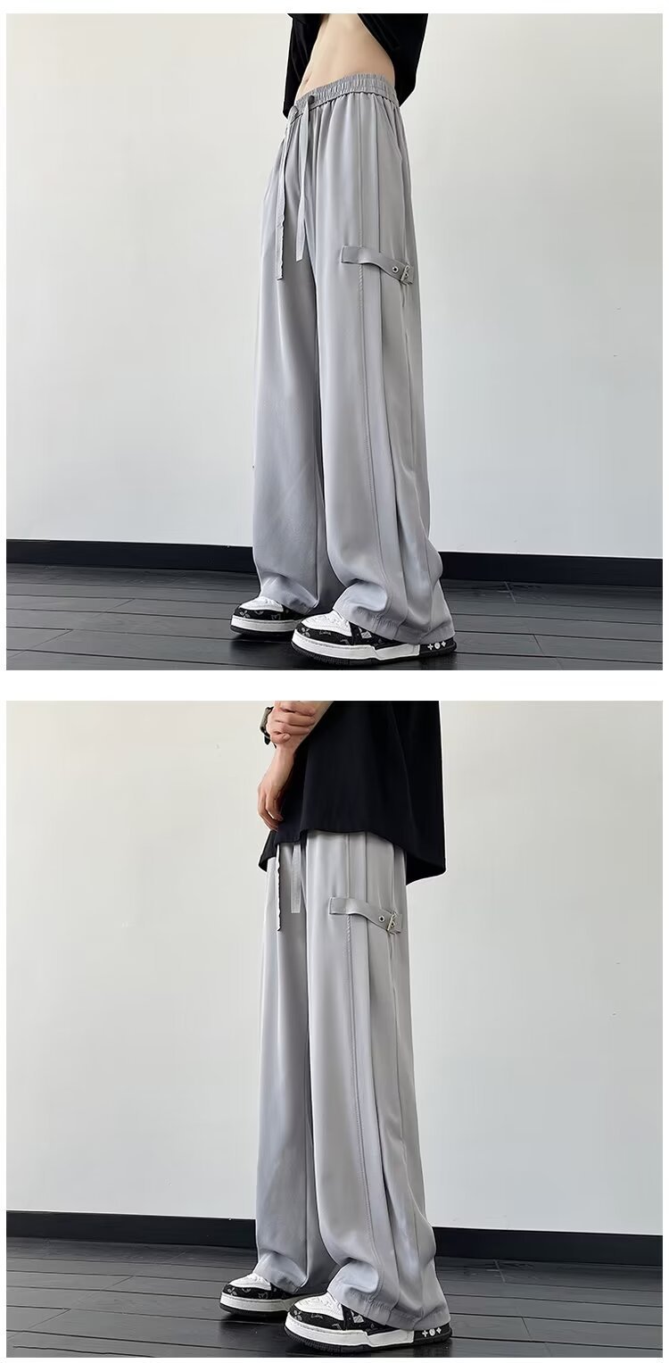 2024 새로운 도착 느슨한 캐주얼 바지 남자 한국 스타일 유행 올 매치 바지 여름 얇은 펜던트 넓은 다리 바지