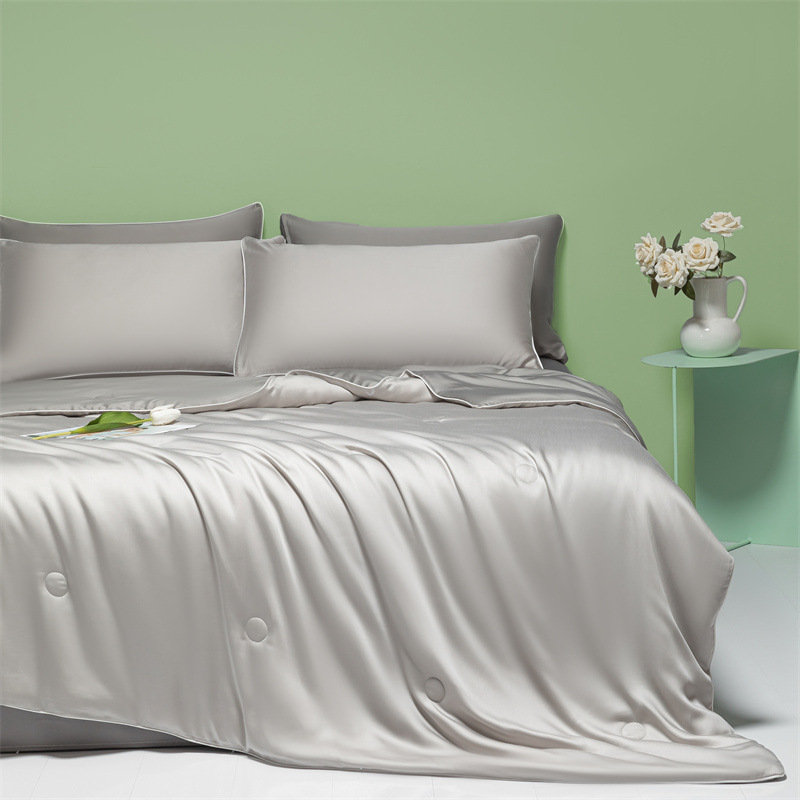 시원한 느낌 얼음 실크 여름 시원한 이불 4 개 세트 기계 세탁 가능한 여름 이불 여름 싱글 얇은 더블 에어컨 이불