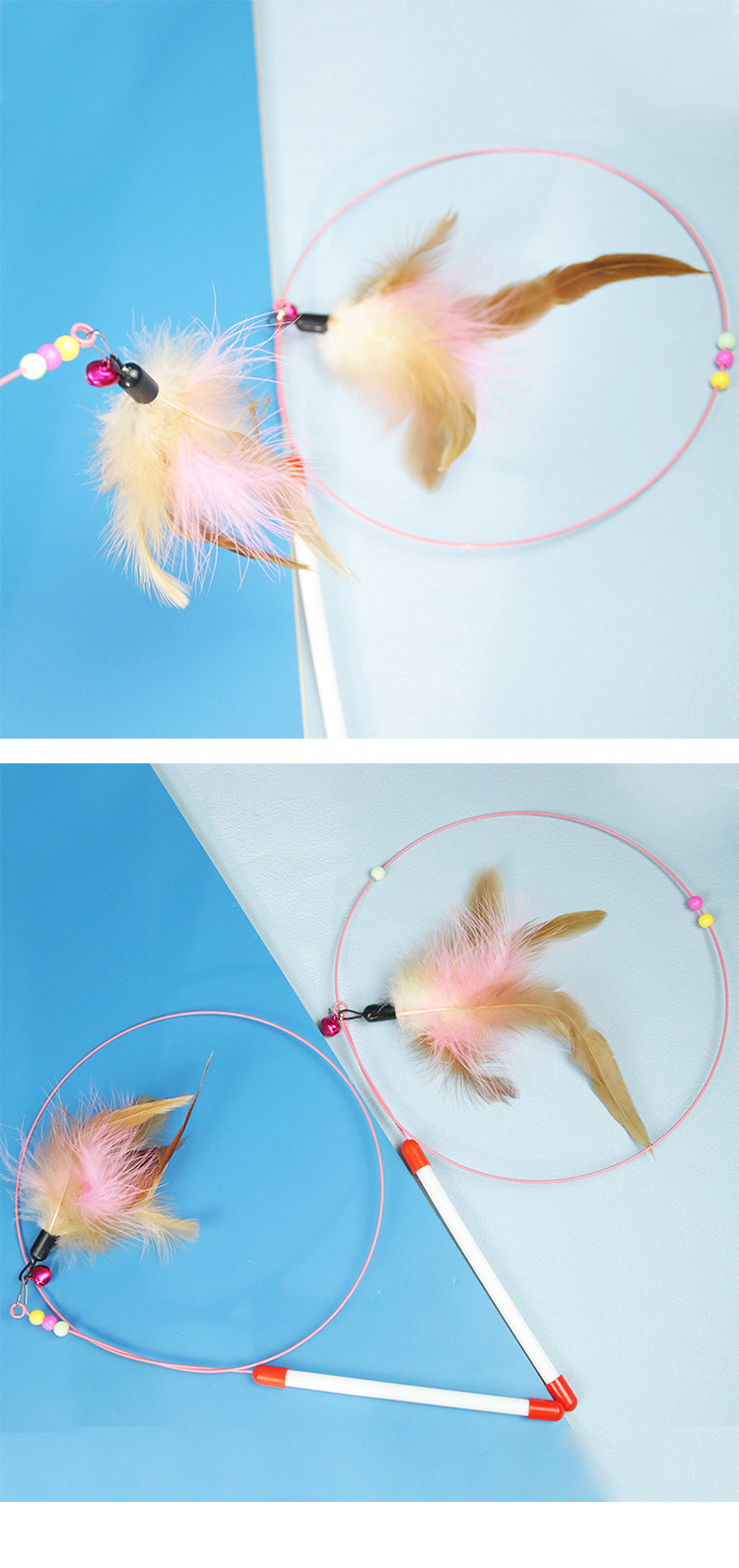 • 깃털 와이어 고양이 놀리는 막대