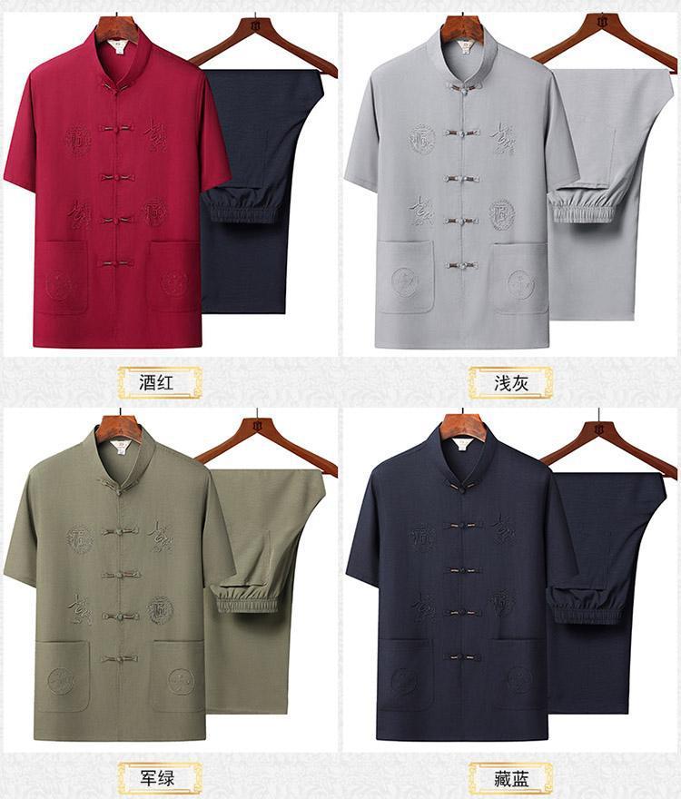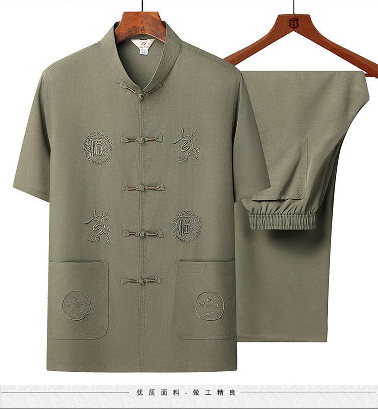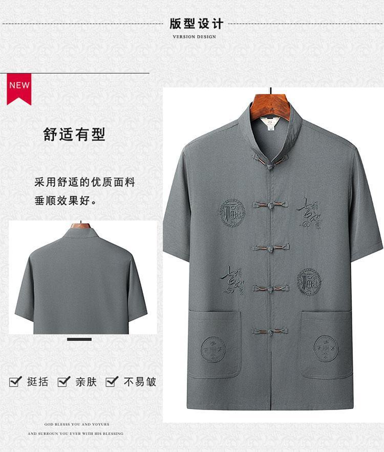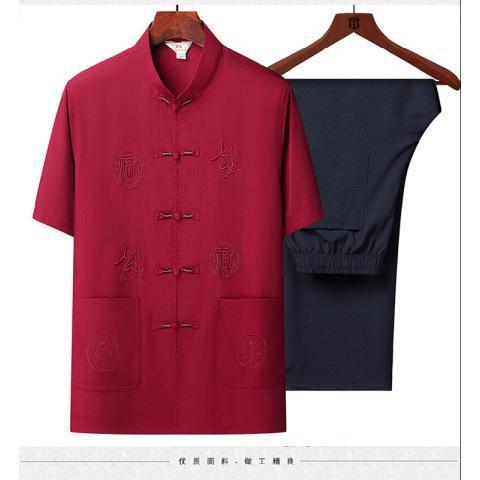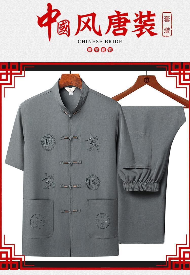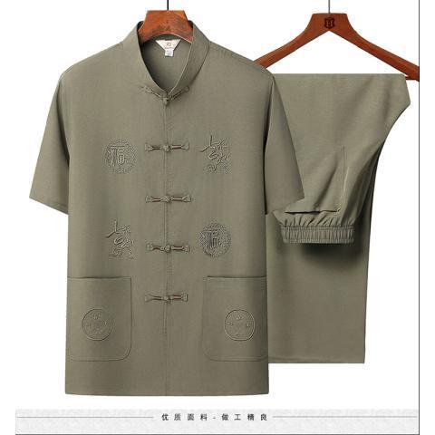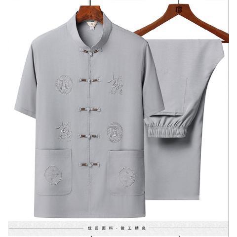 Tang 세트 중국 스타일 남성 반소매 중년 아빠 세트 세트 얇은 캐주얼 중국 아이스 실크 한푸스토어 가기
