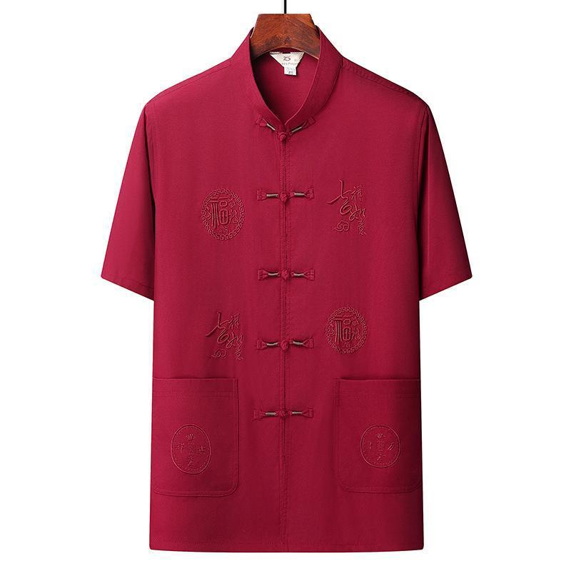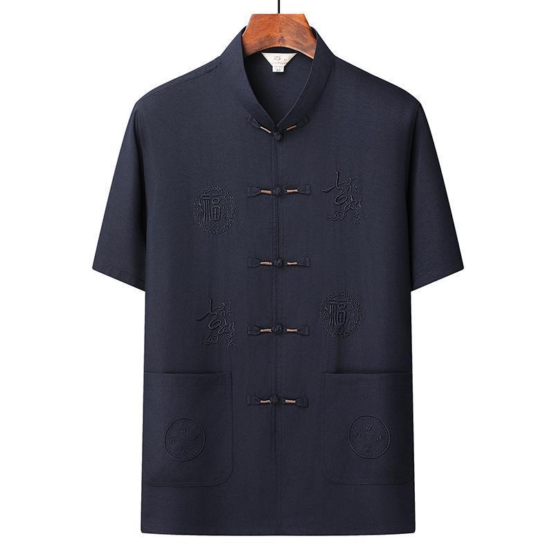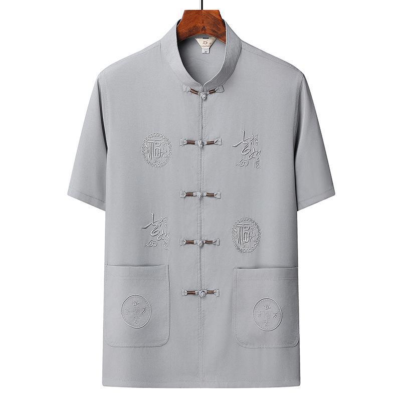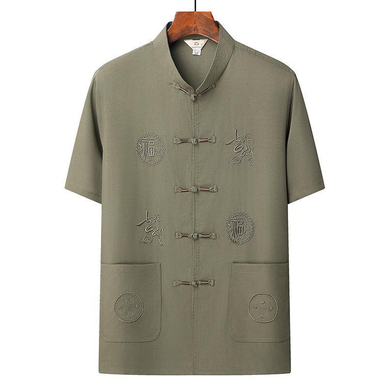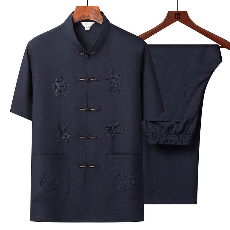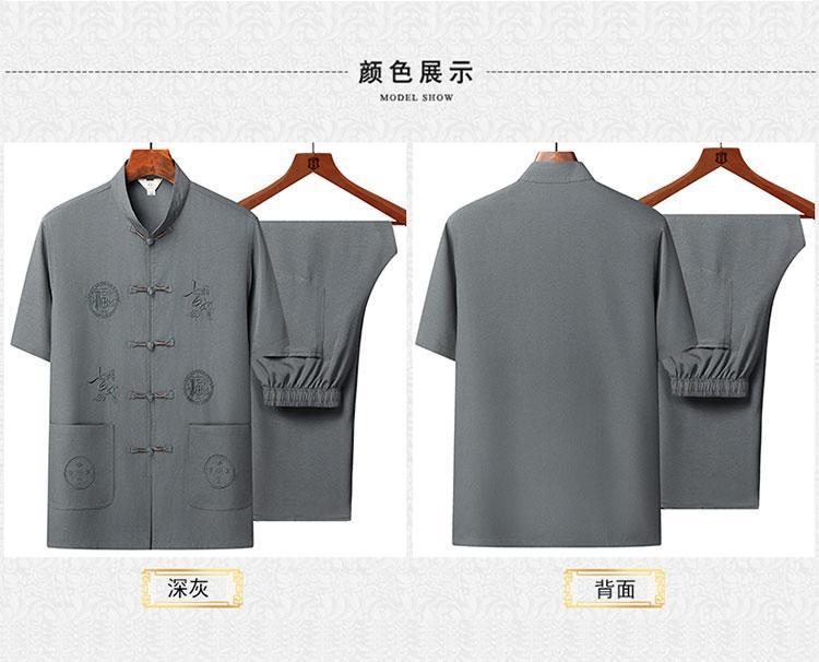 Tang 세트 중국 스타일 남성 반소매 중년 아빠 세트 세트 얇은 캐주얼 중국 아이스 실크 한푸스토어 가기