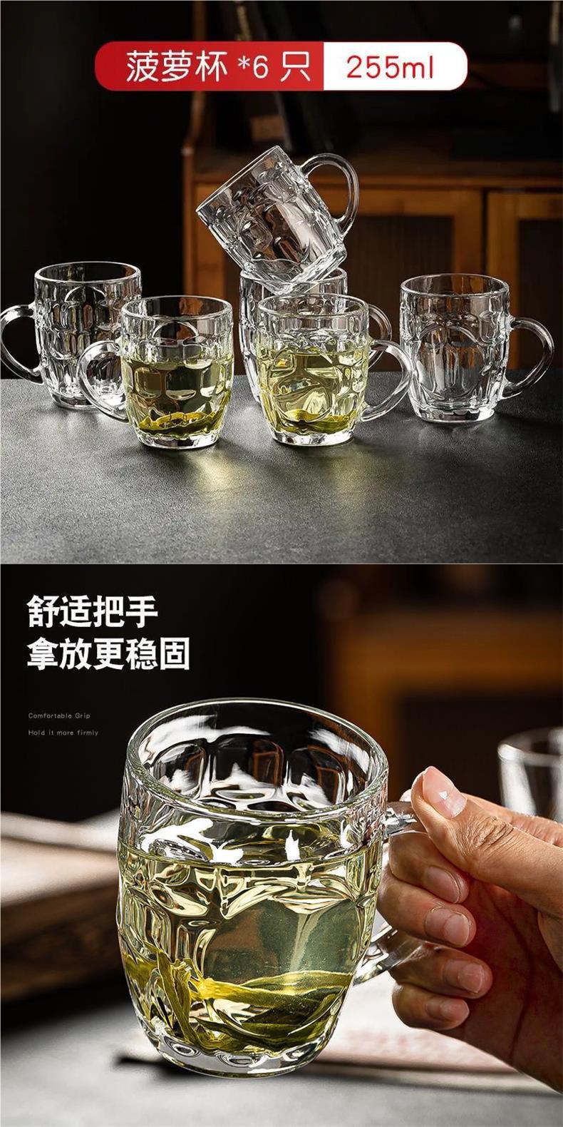 Yanzhong 두꺼운 내열 유리 투명 유리 차 컵 녹차 컵 손잡이 차 컵 가정용 마시는 컵