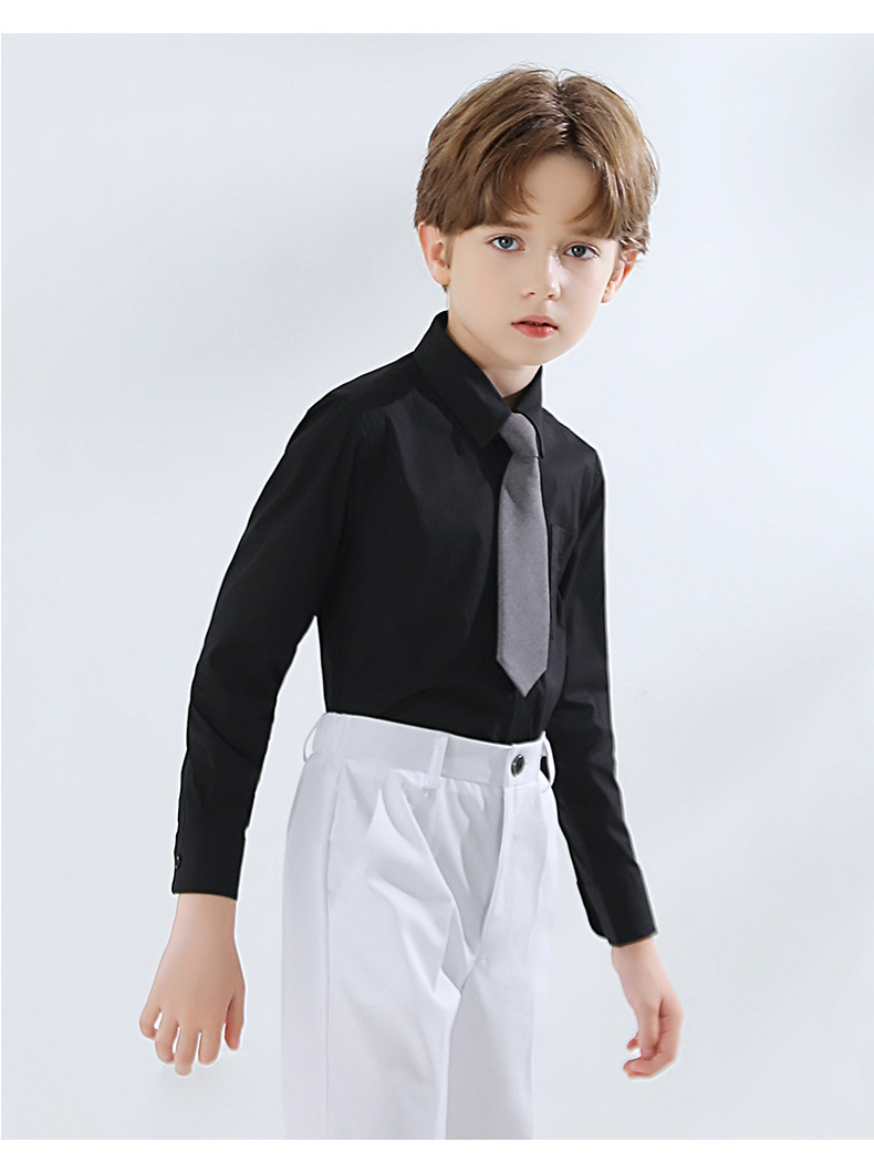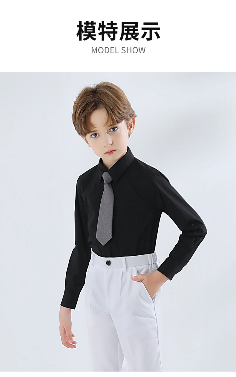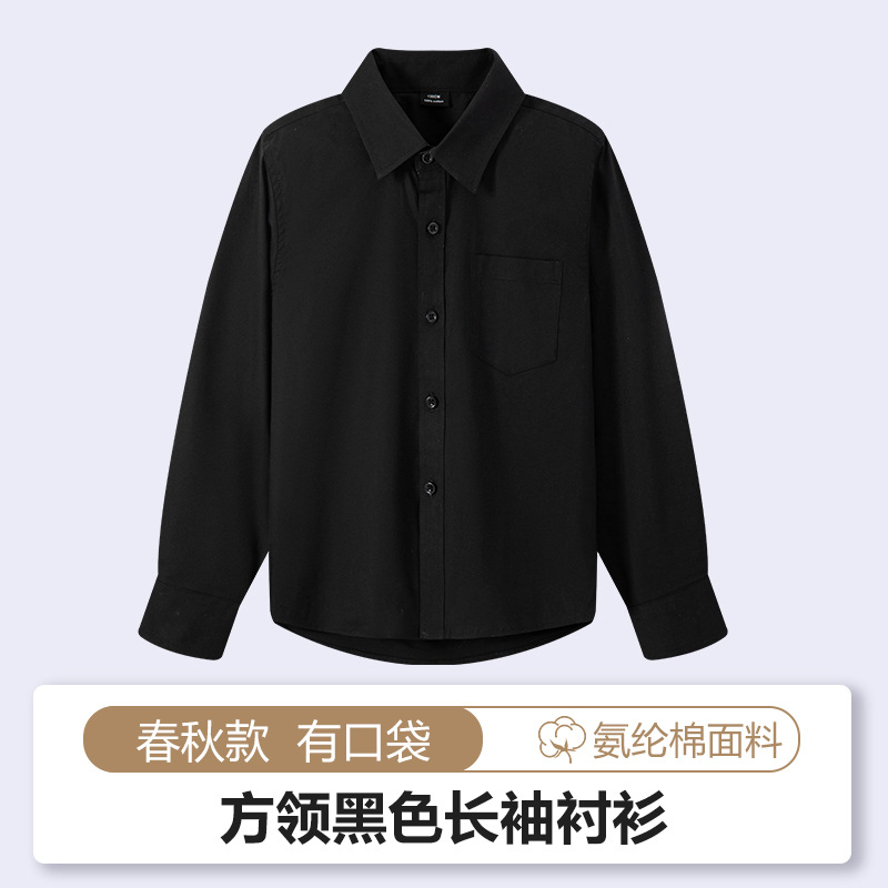 국경 간 봄과 가을 학생 어린이 셔츠 검은 긴 소매 광장 칼라 셔츠 어린이 공연 어린이 착용 중학교 어린이 셔츠스토어 가기