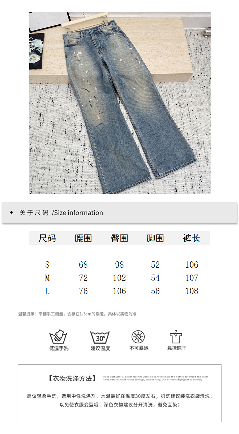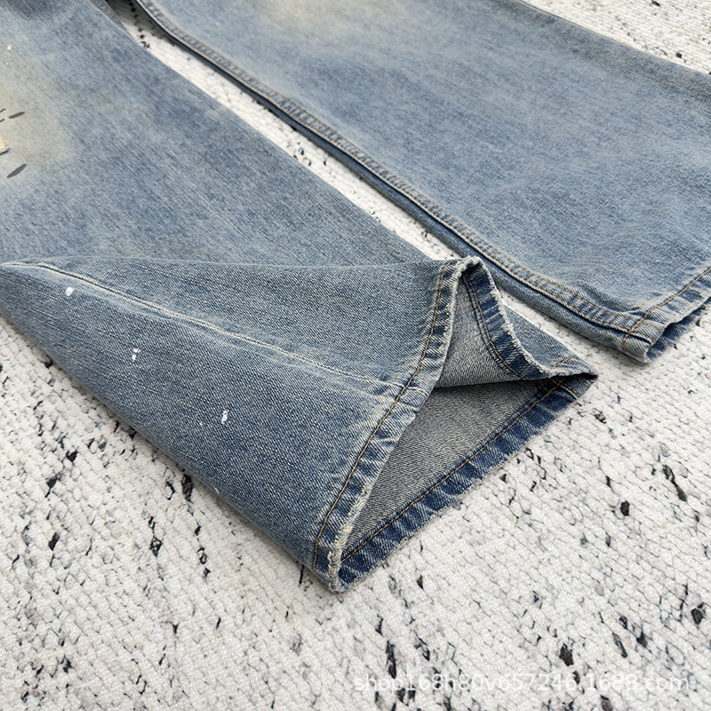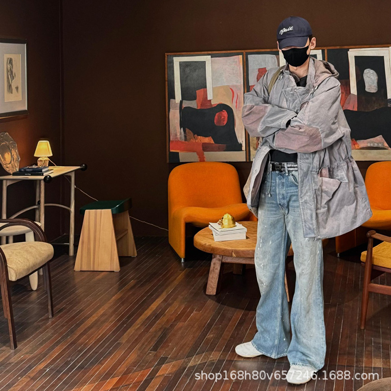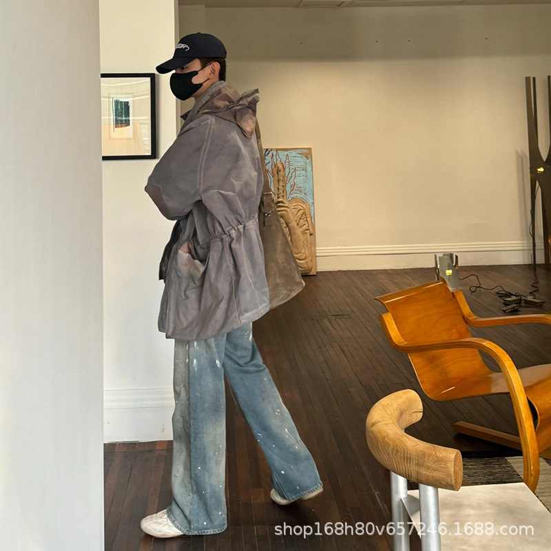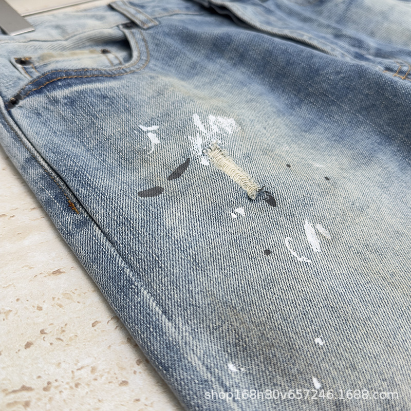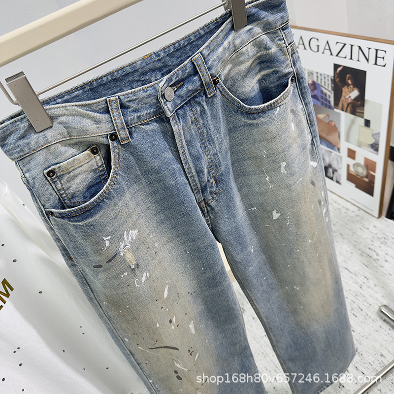 Bai Jingting의 틈새 디자인 세탁 및 최악의 드레스 스플래시 잉크 및 머드 염색 느슨한 청바지 커플을위한 스트레이트 다리 바지스토어 가기