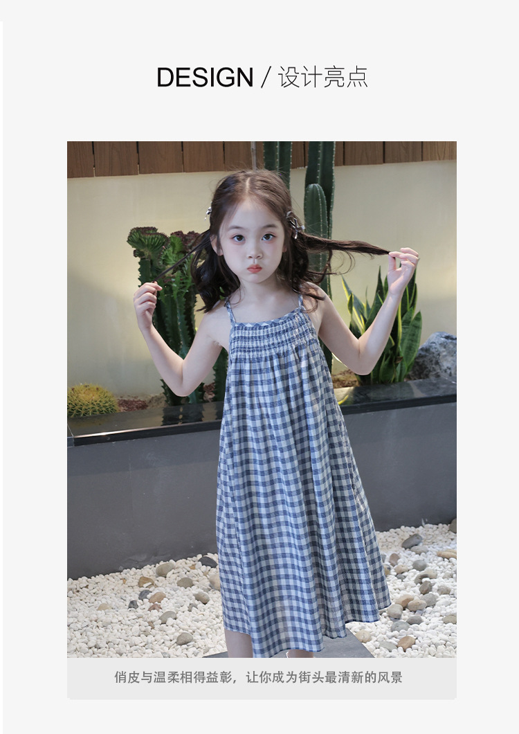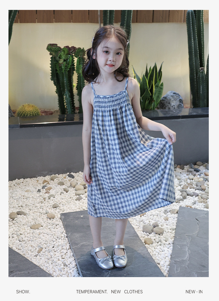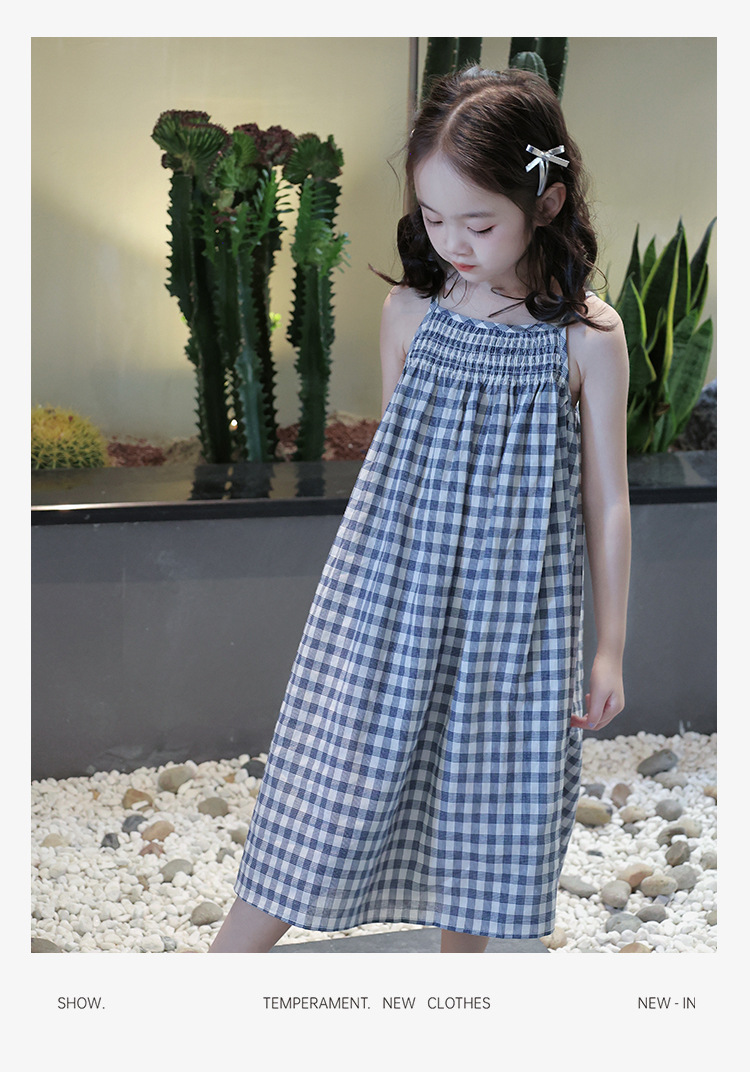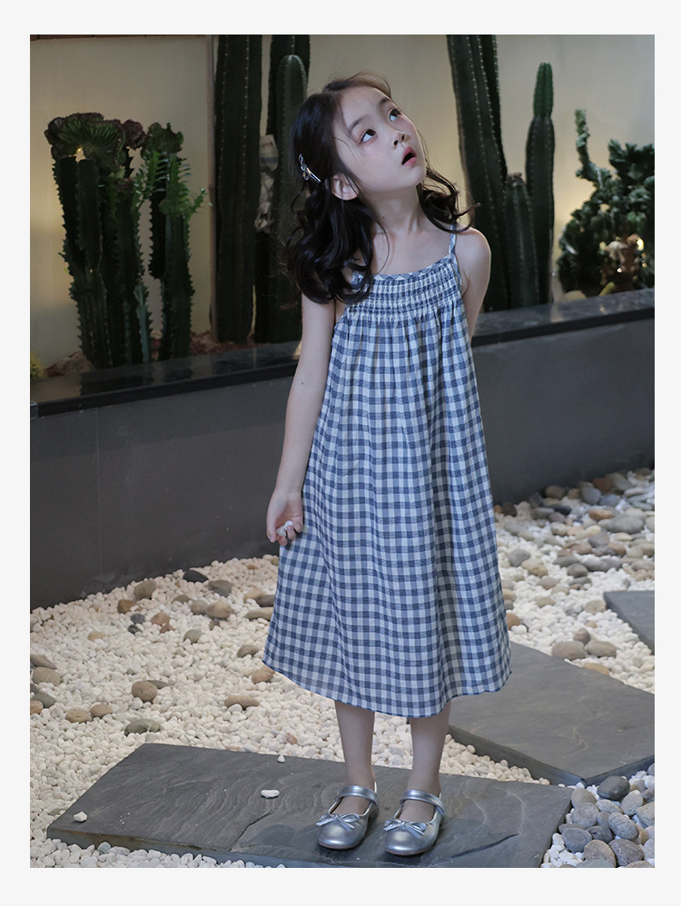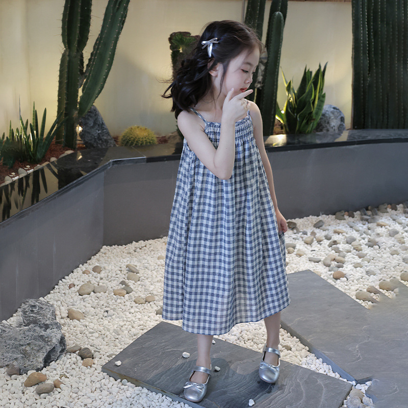 어린이 여름 캐주얼 원피스 소녀 한국 스타일 웨스턴 스타일 체크 무늬 슬립 스커트 아기의 여름 민소매 긴 스커트