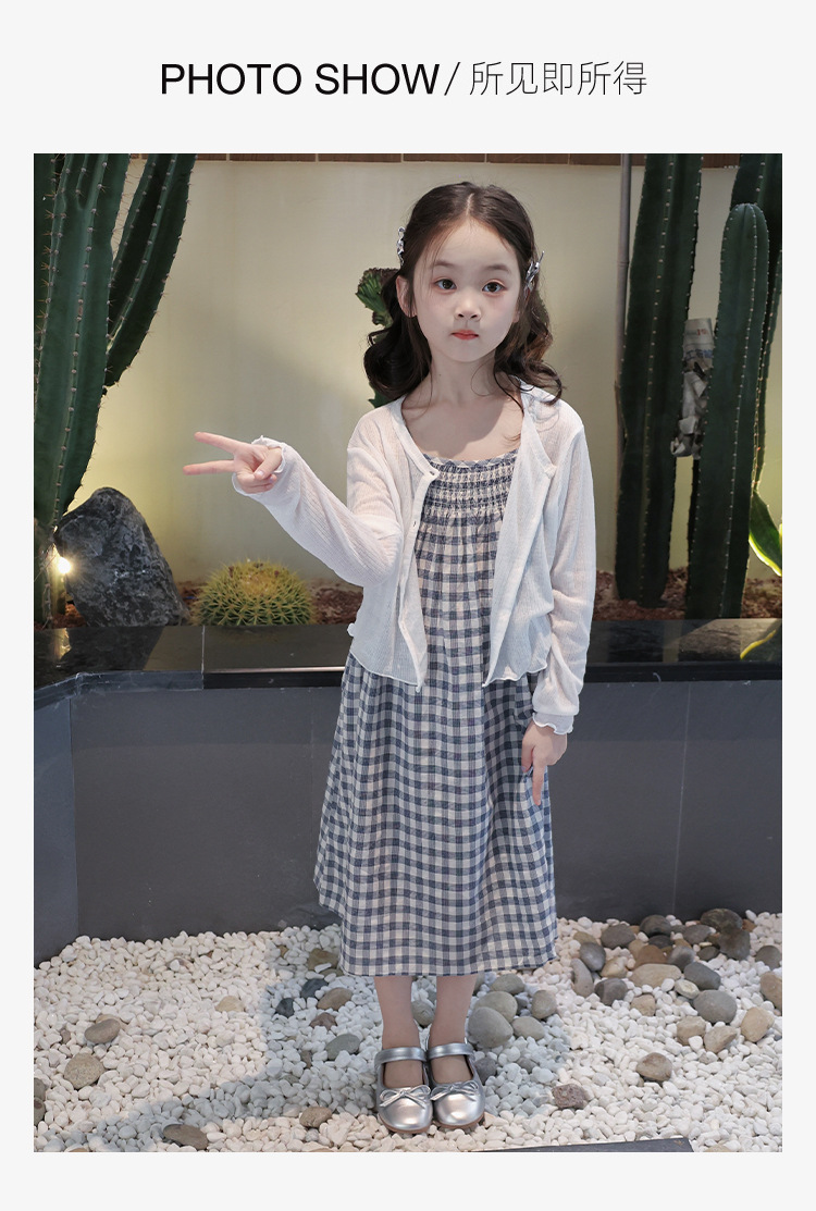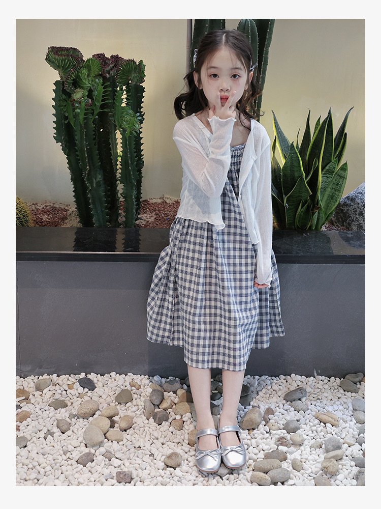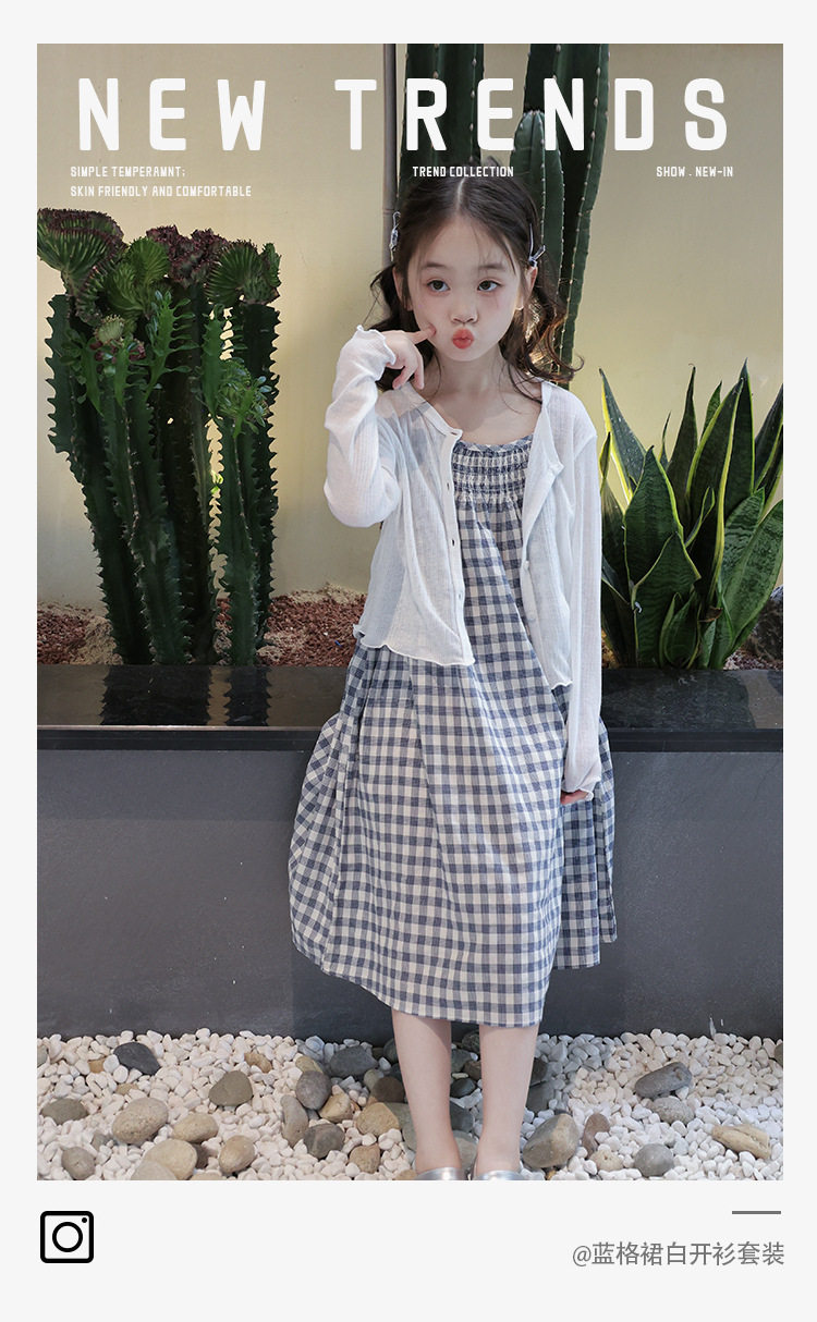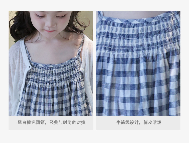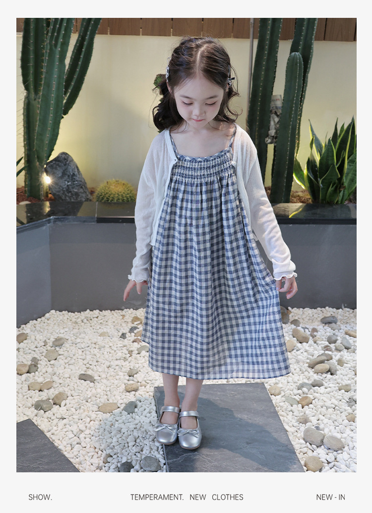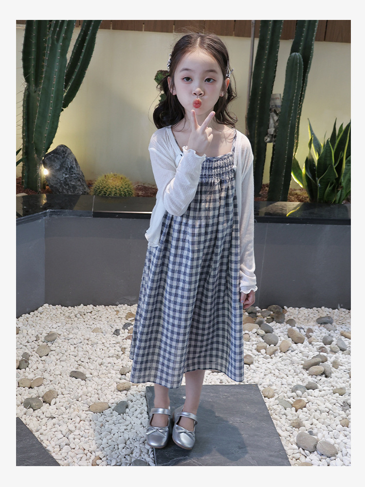 어린이 여름 캐주얼 원피스 소녀 한국 스타일 웨스턴 스타일 체크 무늬 슬립 스커트 아기의 여름 민소매 긴 스커트