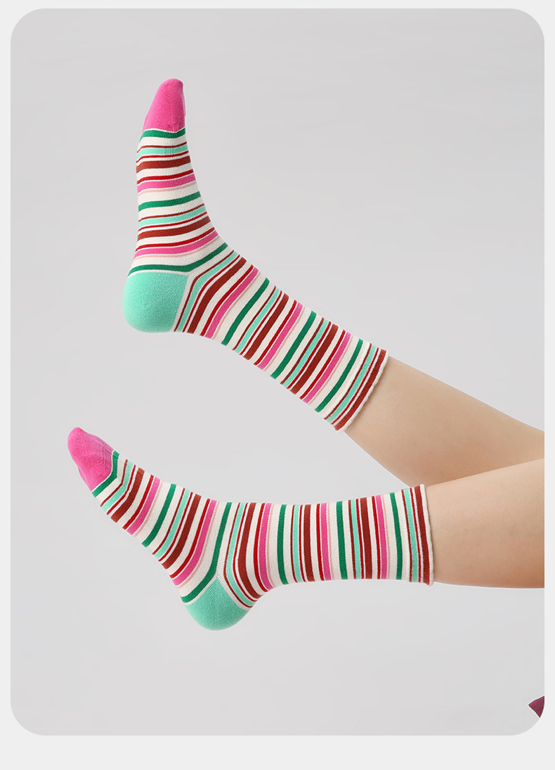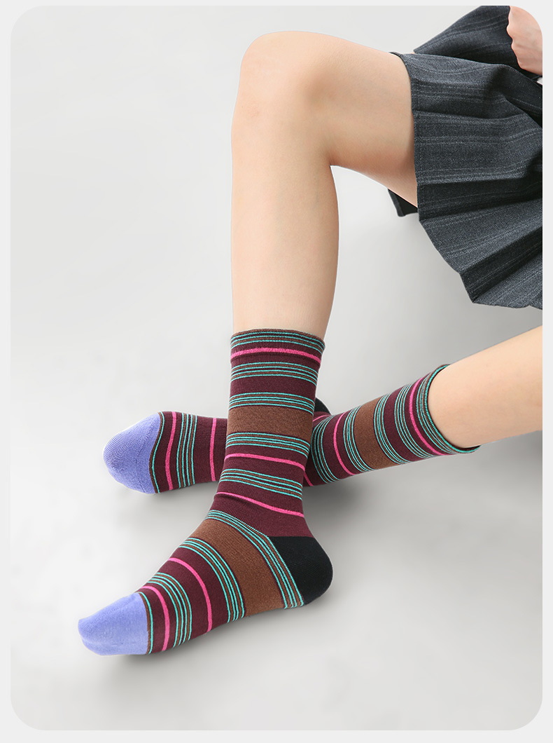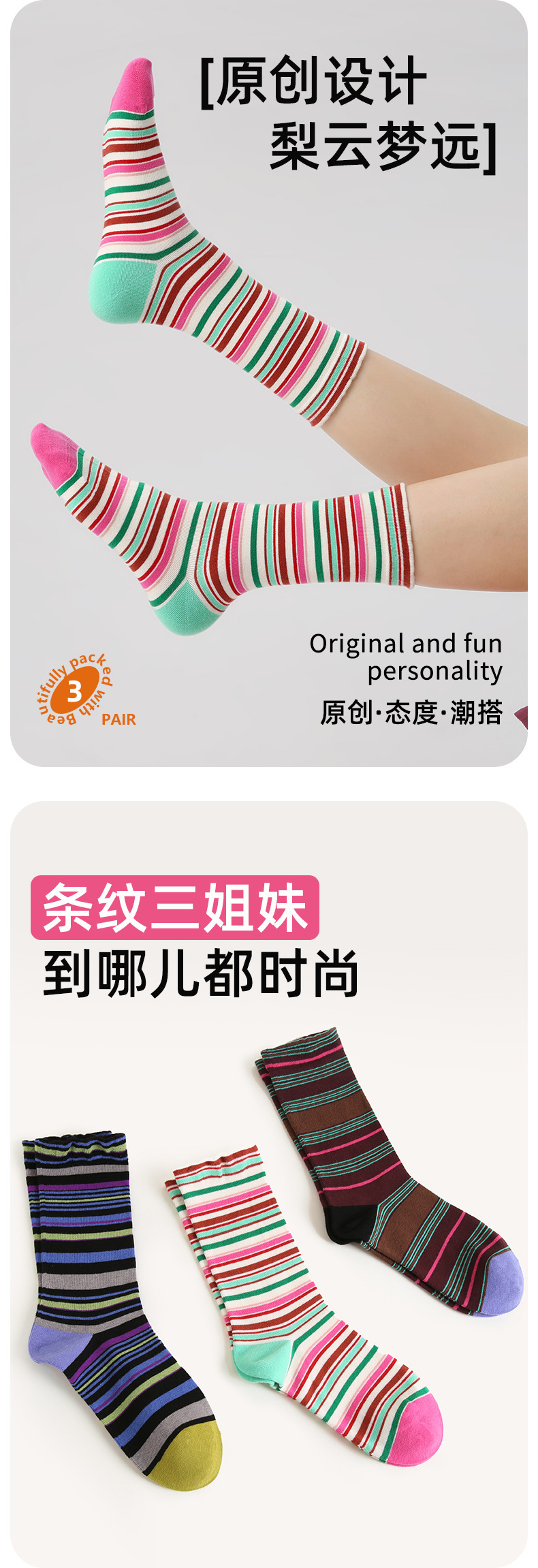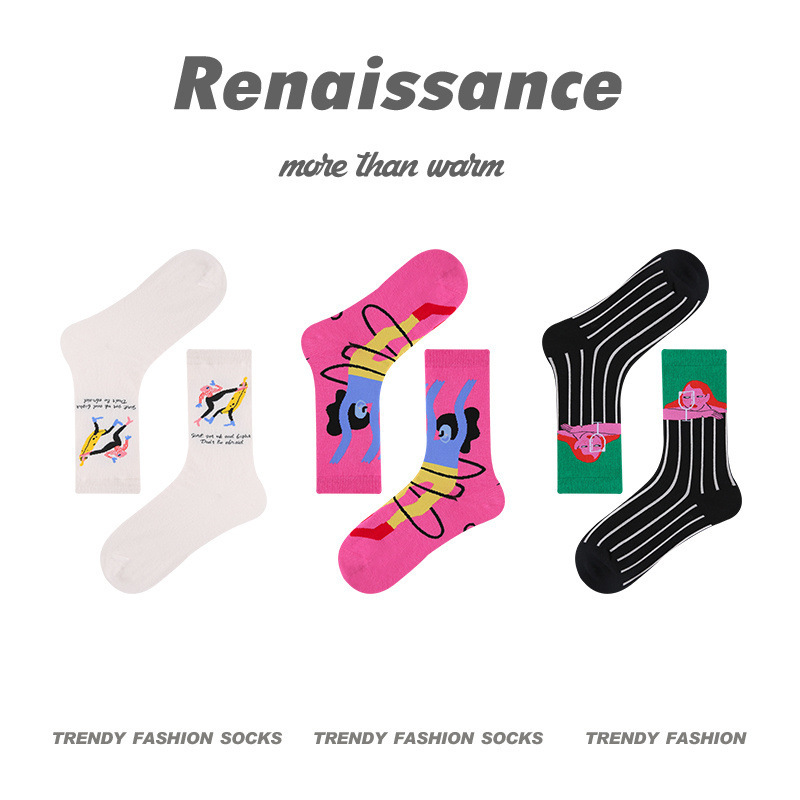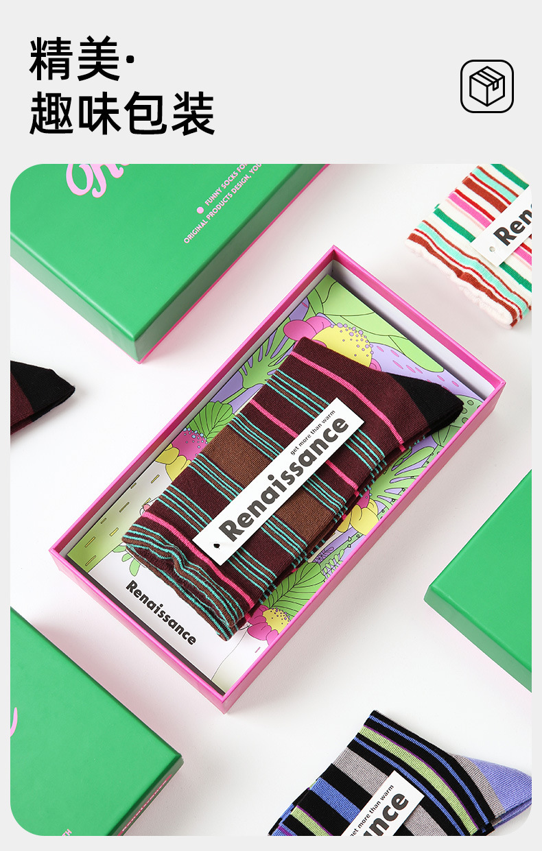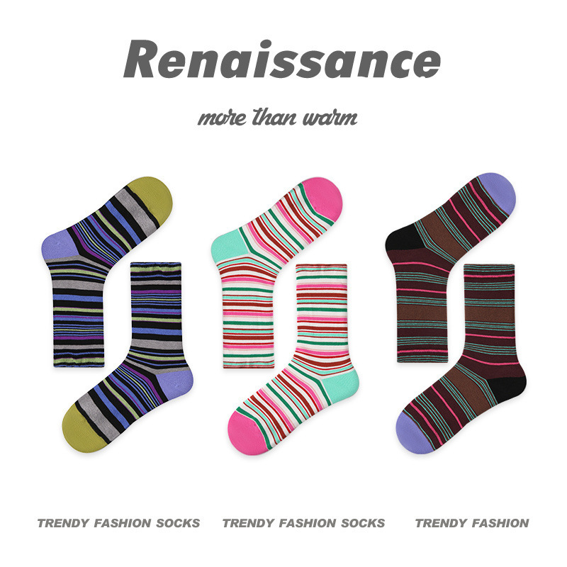 3 쌍-르네상스 오리지널 디자인 여성 양말 간단한 줄무늬 대비 색상 콤비네이션 코튼 미드 튜브 양말 여성용 선물 상자 양말스토어 가기